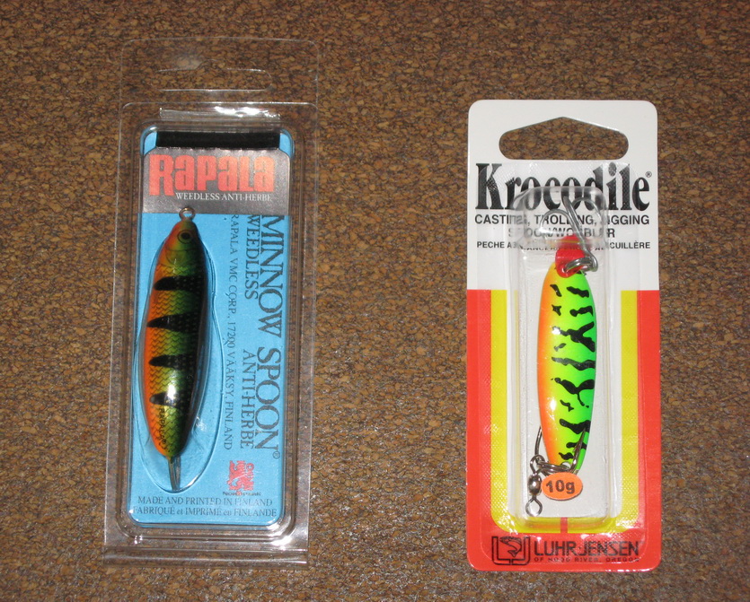 Коллеги,вчера лишился своей уловистой блесны,если кто видел их у нас в продаже маякните интересует именно окрас Огненный тигр и весом 10гр. Вот она (Luhr Jensen Krocodile),10гр,цвет(FT).На фотке она справа,а на второй она самая нижняя.
