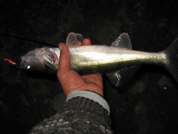 Стали, заякорились, начал джиговать колебалкой, отозвалась щучка закилушка.
