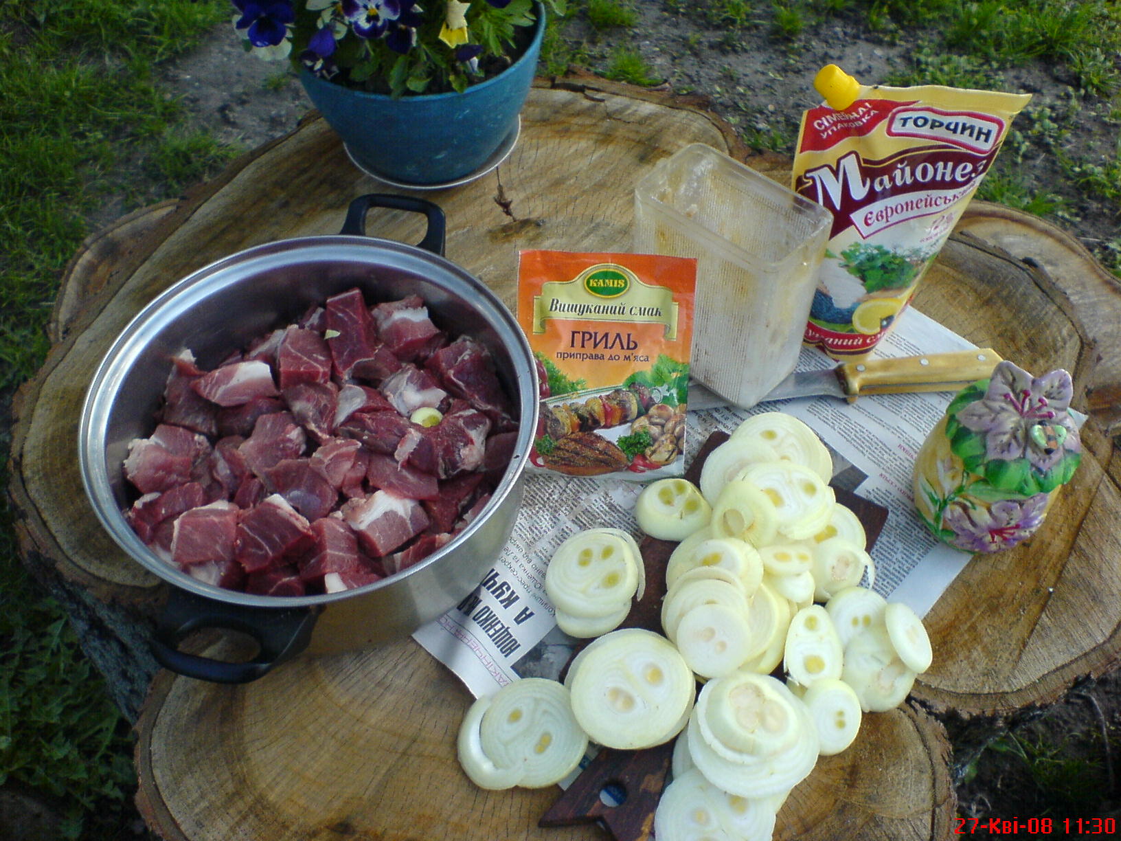 Зовсім недавно на пасху робили шашличок вирішив поділитись. Мясо свинина більще трьох кг. приправа до грілю 1 пачка просто вирішив попробувати треба булоб десь 3 пачки булоб краще. Майонез одна велика пачка,цибуля,перець,сіль. Все крім цибулі перемішати спеції за смаком кому як подобаеться і після того як вимішали накладаемо в каструльку по черзі мясо та переложуемо цибулею. Настоювати можна і 3-5 годин, але ми на ніч залишили. Робимо з майонезом завжди уксус ніколи не добавляемо, шашлик виходить просто супер все що потрібно додатково це мангал, дрова (бажано дубові) ну і звичайно хорошу компанію та пиво. Смачного.