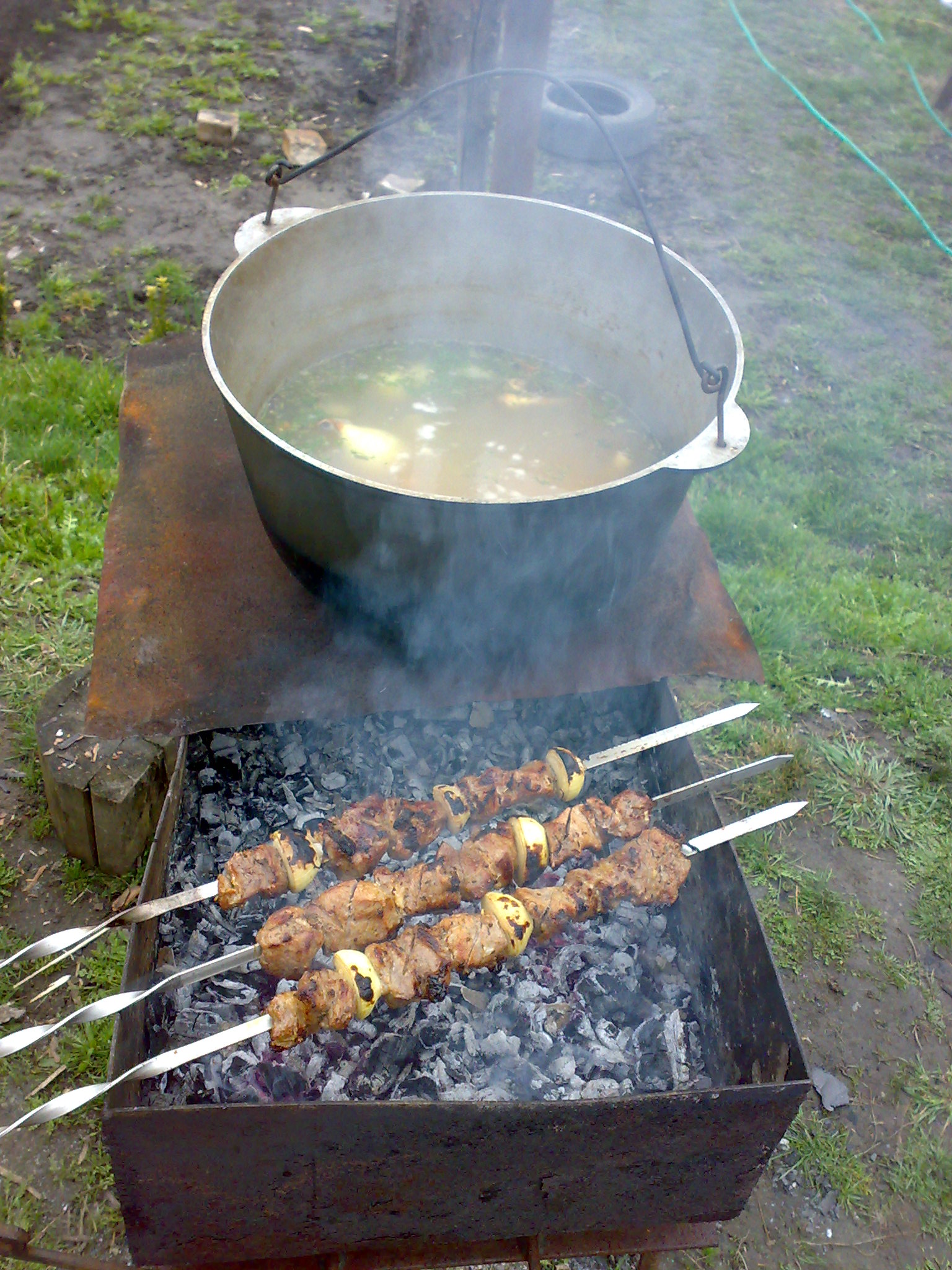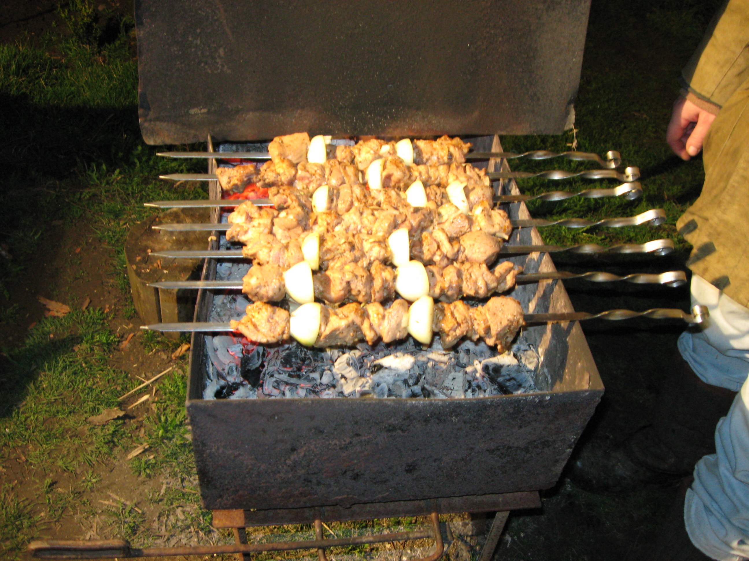 Повторюсь! Самый лучший шашлык из свежего мяса и без всякого маринада. Наисвежаешее мясо содержит свой собственный сок лучше любого маринада. Перед разведением костра порезать мясо и посолить. Жарить лучше на решетке для "барбекю", обязательно поливая (начиная от простой воды до сами найдете чем дучше)