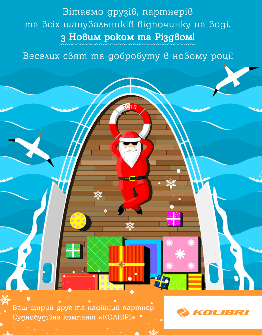 Шановні друзі! З наступаючими святами! Побачимость в Новому році! З найкращими побажаннями, Kolibriboats