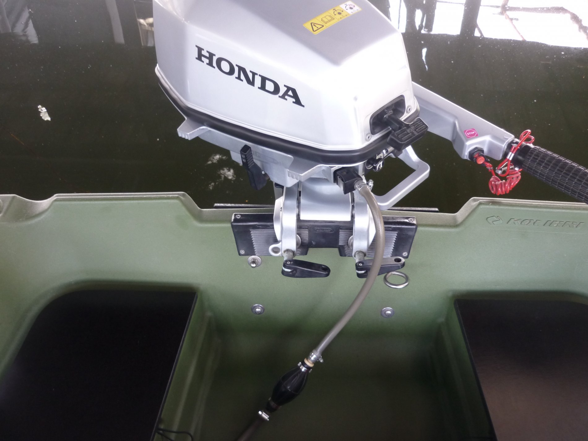 По ходовым характеристикам мнение не изменилось - хотя лодка и не глиссирующая и что бы преодолеть расстояния до места рыбалки порядка 10 - 20 км. на моторе 5 л.с. приходится тратить больше времени, но это компенсирует отличная устойчивость лодки - при любом ветре и волне и грамотном управлении достигается безопасность хода и при скромном потреблении мотора Хонда 5 получается очень экономично. Стоит отметить отличный ход лодки под вёслами, можно не напрягаясь пройти приличное расстояние. Корпус лодки за счёт материала - полиэтилена отлично гасит удары воды и препятствий, их практически не ощущаешь, при этом если удар пришёлся о металл, то на корпусе максимум может соскоблиться полиэтилен по типу как у парафиновой свечки.
