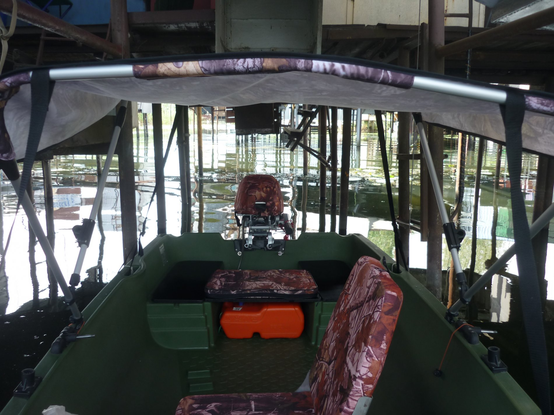 Приветствую всех коллег! Вот и пошёл 4 год эксплуатации лодки RKM - 350. Небольшой перерыв в рыбалках на обслуживание мотора и самой лодки. В принципе доработки все сделаны, всё устраивает. Тщательно осмотрел транец и дно лодки - ведь мотор висит постоянно уже 4 год. Так как резко пришло лето установил тент от солнца - на рыбалках во второй половине дня очень выручает. Примерил антимоскитную сетку на штатный тент - сетка подошла, так что может и пригодится.