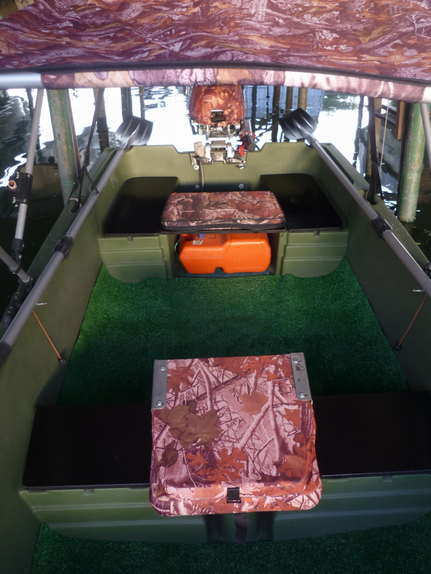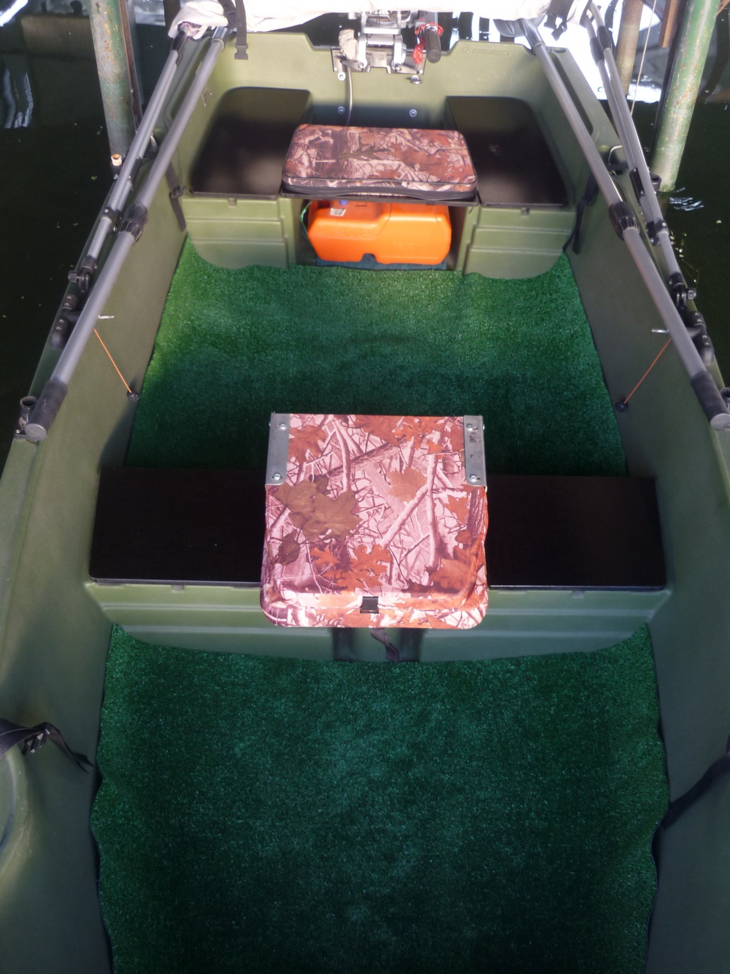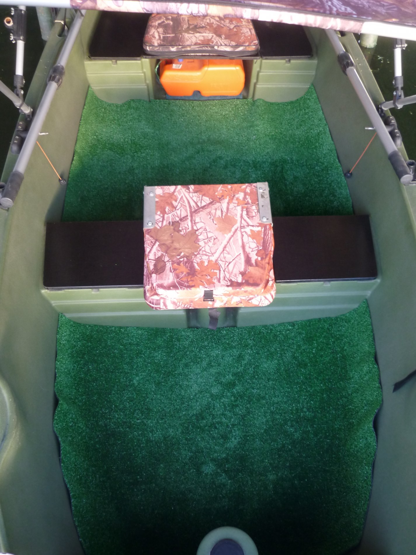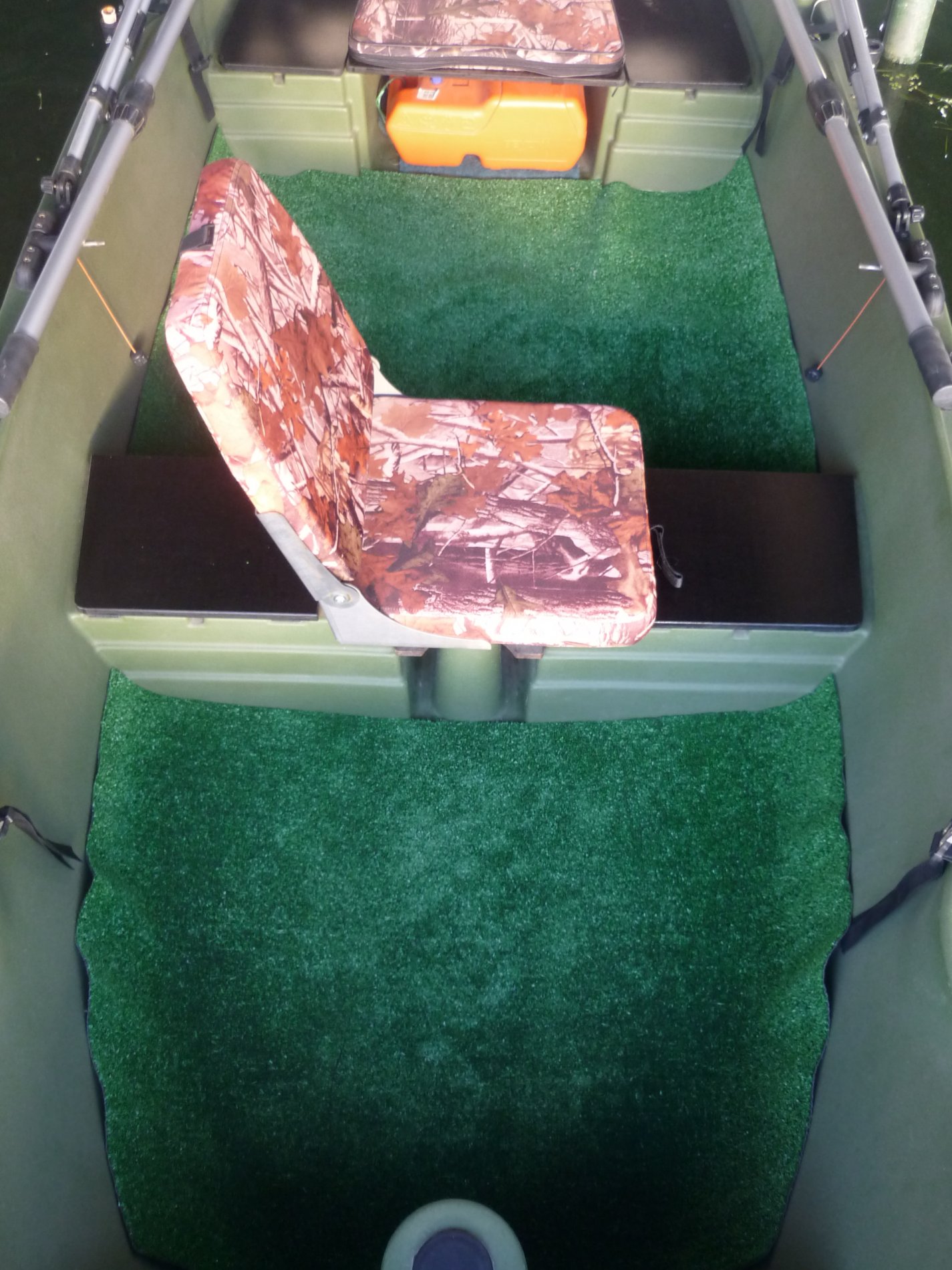 Всех приветствую! Последние рыбалки были на мирную рыбу, приходилось после каждой мыть кокпит от прикормки и другого мусора. Решил на пол постелить покрытие из полипропилена под траву. Покрытие бельгийское, назначение - для кафе, бассейнов, площадок под открытым небом. Не боится влаги, солнца, есть отзывы коллег, которые его используют давно. После рыбалки достаточно его вытряхнуть, сполоснуть если надо в воде и всё. Весь мусор задерживается в покрытии. Ну и ходить по нему тоже приятно.
