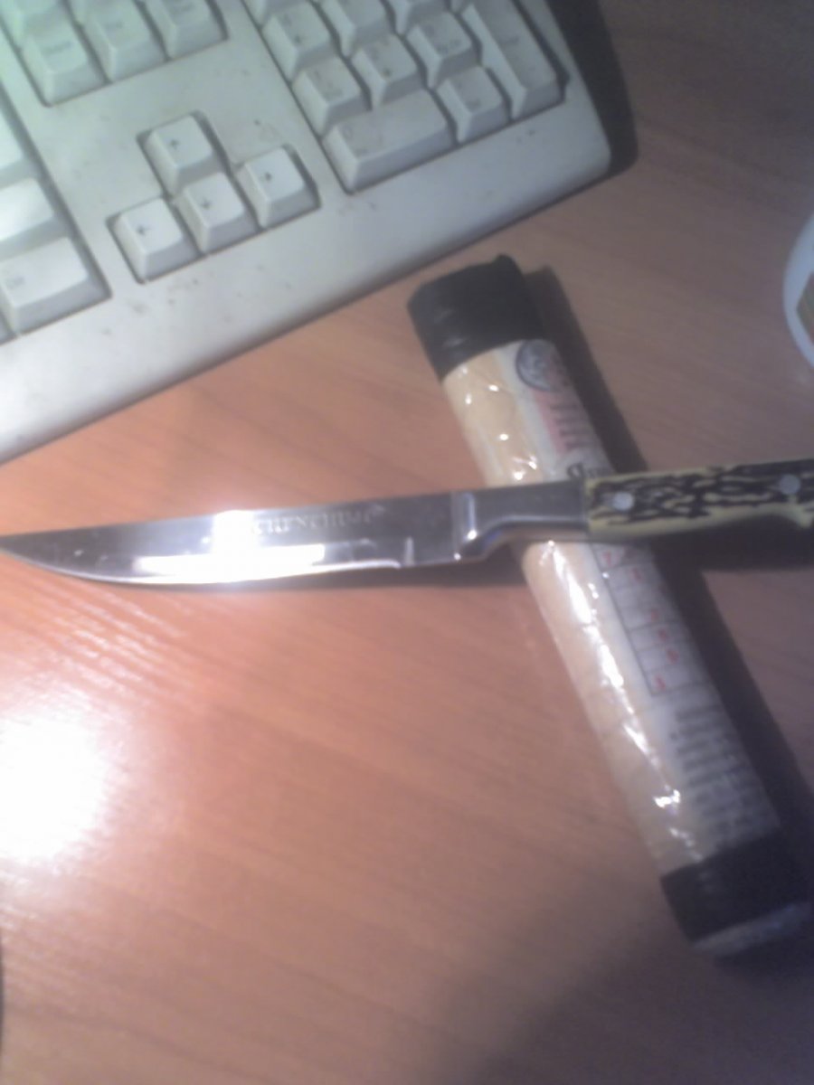 А это мой... удачно купил. Китай, режет всё, от сала до сетей. Пользую на рыбалке, три года со мной в рюкзаке. Цена вопроса - 10грн.