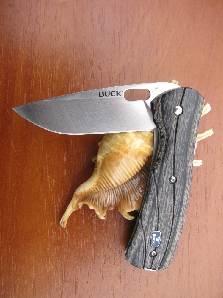 Складень всегда под рукой при береговой рыбалке. Не скажу, что выручает, но часто рыбалку делает более комфортной. Это нож для души. Из последнего приобретения Buck Vantage Avid. Спин от Кроя с аналогичным названием хорош, нож также не подводит.