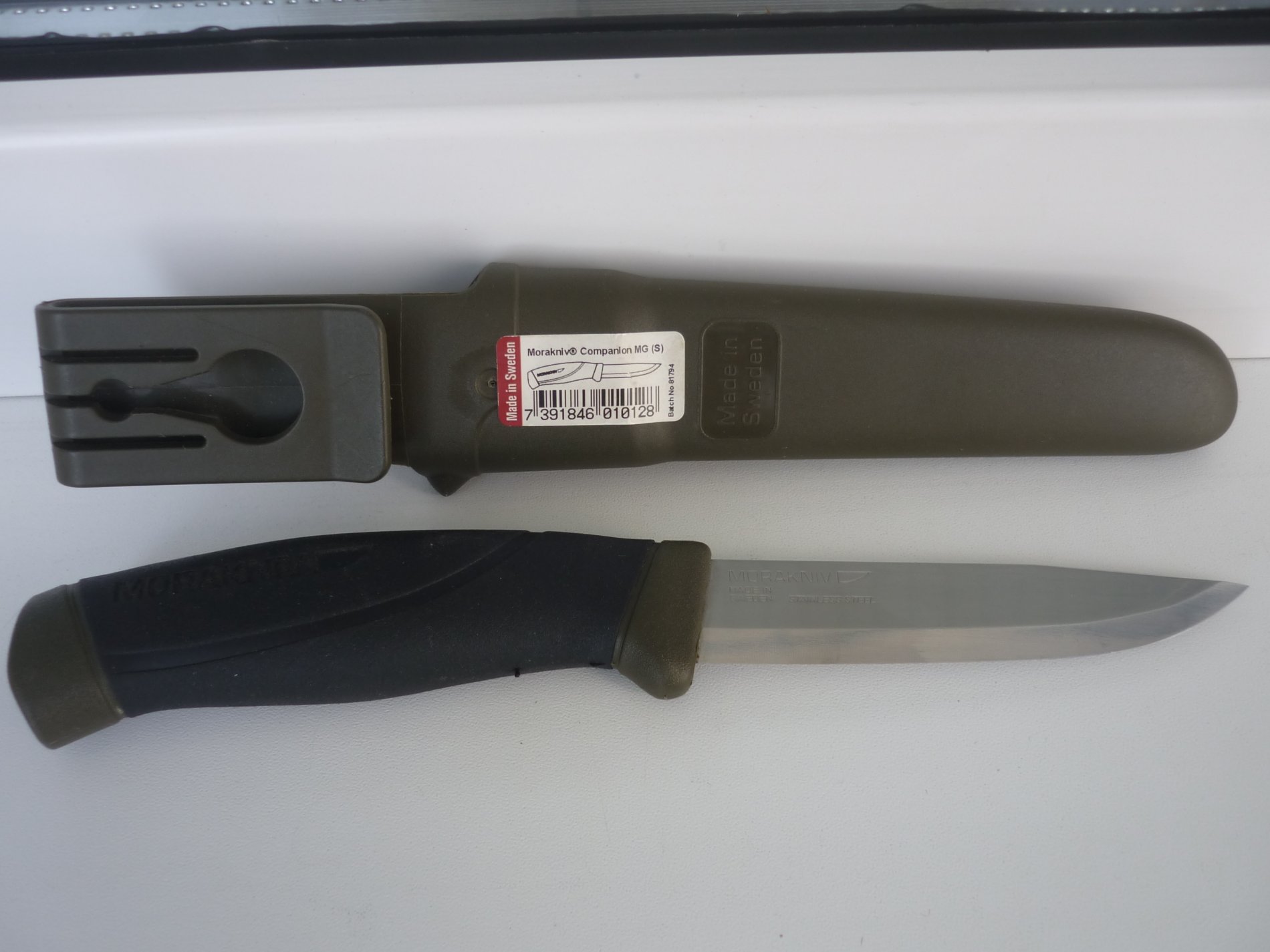 Всех приветствую! На рыбалку выезжаю на лодке, там в бардачке 4 год обосновался MoraKniv - бюджетный до 15$ туристический нож производства Швеция с пластиковым чехлом с креплением на пояс. Клинок из нержавейки, удобная прорезиненная рукоятка, длина клинка - 110мм., общая длина - 220мм.,вес - 86гр. С завода отличная заточка, несколько раз правил бруском - используется для задач рыбалки.
