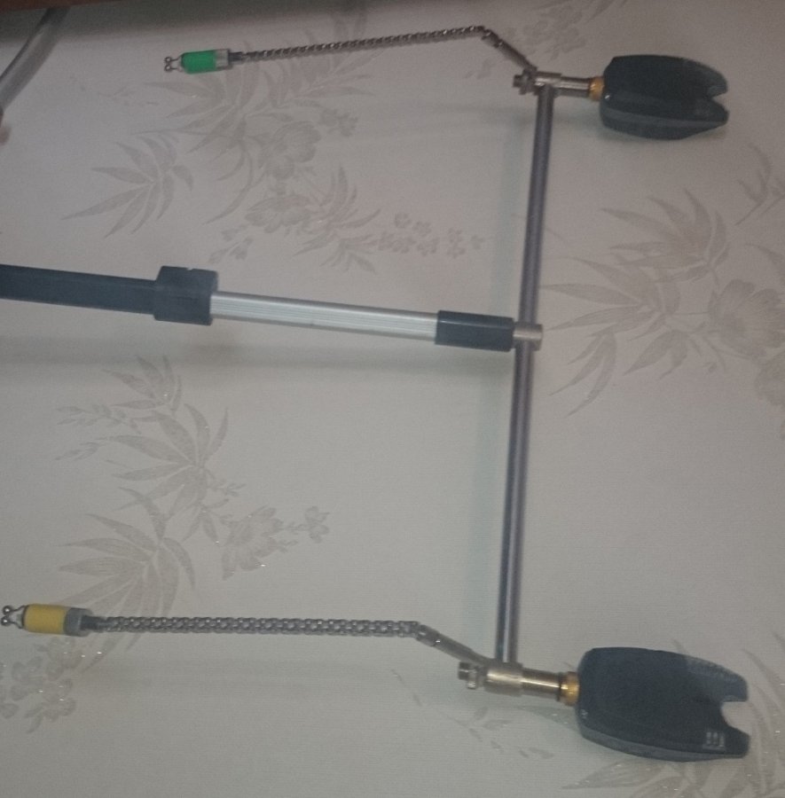 У нас мелкий дождик моросит и ветер. Погода рыбацкая. Сходил на берег - результат более чем плачевный. Поймал 5 коропчучков граммов по 200, из них один зеркальный, отпускал сразу. Этих коропчуков прошлой осенью какой то богатый буратино запустил в наш водоем, и находились люди, у которых хватало совести таких "грудничков" брать! Мы еще в прошлом году одного обпаскудили за этих коропчуков, но каждому в рюкзак не заглянешь. Народ в массе по прежнему жлоб и говно! Подставка с бузбаром на два прутика реально удобнее. В принципе я не переделывал свою первую подставку на три удилища, теперь, в зависимости от ситуации можно брать один комплект на два прута, два по два или один на три и один на три плюс один на два. Итого пять удилищ. Так, по жлобски!