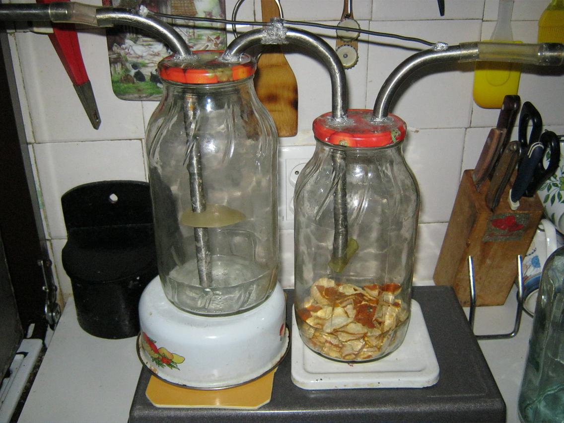 Улучшаем аппарат, ну и продукт естественно:) При помощи нехитрой приспособы, можно повысить качество продукта, называется се изделие по разному- прикубник, сухопарник, барботёр... Это так сказать следующий шаг к ректификационной колонне :D Выглядит сие агрегат вот так 131251.jpg фото из инета... Пары сначала попадают в одну ёмкость, переиспаряются, попадают во вторую, переиспаряются в ней и потом на холодильник. Плюсов тут несколько, во первых Это спасает от брызгоуноса, на простом аппарате часто при кипении микро или не микро брызги от кипящей браги попадали в продукт и вызывали мутность, тут все брызги попадают в первую ёмкость и в ней и остаются:) во вторых, при переиспарении в этих банках продукт как бы более очищается, переиспаряется не всё, часть каки конденсируется и остаётся внутри:) в третьих, мы получаем на выходе более крепкий продукт, так как часть воды не может переиспариться, а чем крепче, тем меньше в нём воды, а вода у нас не фиалками пахнет:D Ну и ещё внутрь банок можно положить какую нибудь ароматную фиговину (например шкурки цитрусовых:)) и при переиспарении продукт возьмет в себя этот запах, на вид слеза, с еле уловимым цитрусовым оттенком, и гыкается мандаринкой:D Вот такая полезная штуковина, я после таких вот двух банок сухопарников, второй раз продукт не перегоняю, моим результат очень нравится:пардон: Вот так выглядят мои сухопарники jg.JPG Трубки взяты с водонагревательного тэна, крышек хватает примерно на год не частого использования, потом закрутка ослабевает, приходится перепаивать:пардон: Во второй как раз шкурки цитрусов, для гыкается мандаринкой:D