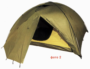 Кроме того, палатки-полусферы, начиная с двухместных, стали делать с двумя противоположно расположенными входами. Это позволило, во-первых, сделать более удобным пользование походной (иногда - коммунальной) "квартирой", во-вторых, в жару осуществлять сквозное проветривание и, в-третьих, вместо одного маленького тамбура получить два.