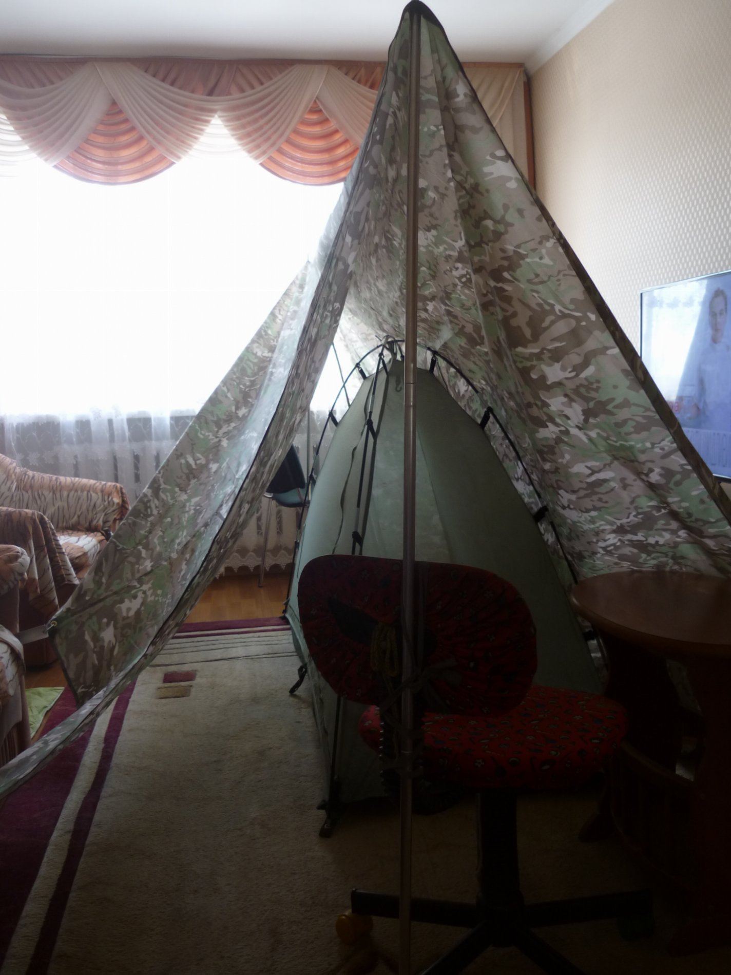 Теперь сложилась такая компания и обстоятельства что ездим на автомобили коллеги по рыбалки. Переночевав несколько рыбалок на открытом воздухе (в теплую погоду – комары, в прохладную – холодно, да и вещи куда-то б забросить от осадков), решил приобрести палатку.