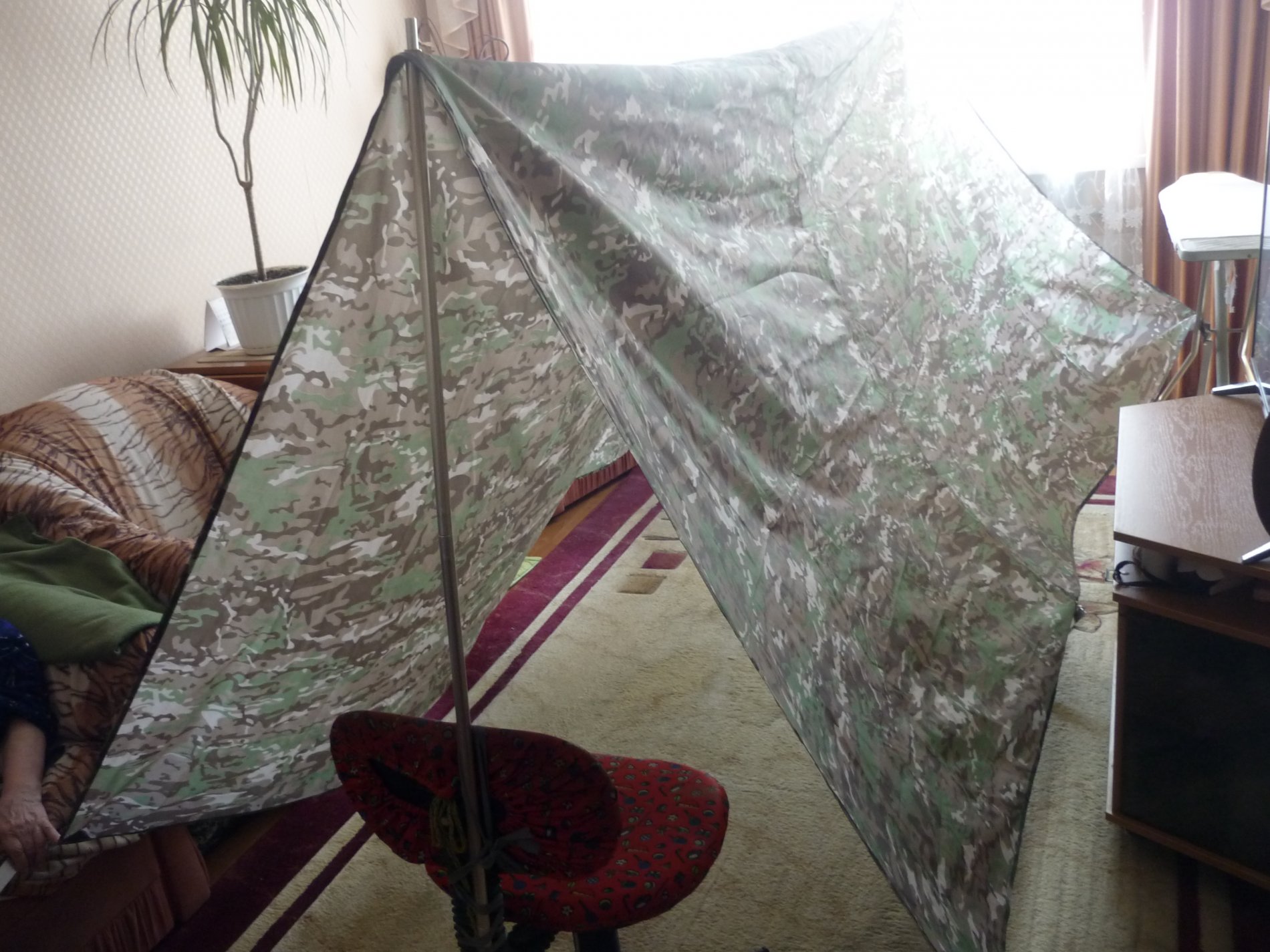 Шалаш бомба, сам такой хочу, но не знаю насколько он нужен, хотел даже купить совдеп-палатку и перекроить. На сегодня понравился вариант с тентом, им пока и пользуюсь.