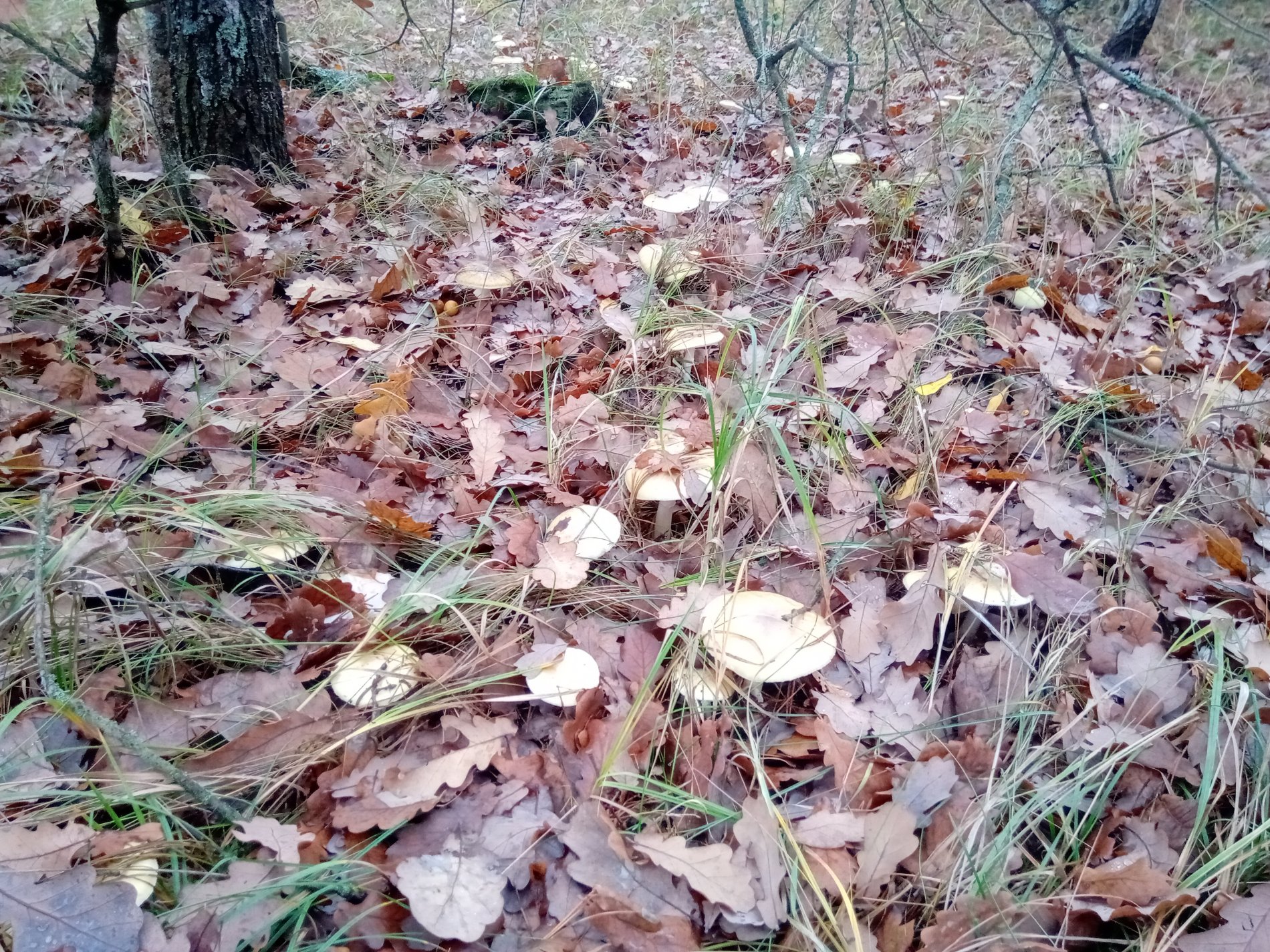 25 ноября. До этого были заморозки и лежал снег. Поехали просто проветрится. Побродив пару часов, почти ничего не нашли. Потом пошли по верхам бугров, а они там есть. Поднялись ближе к солнцу. В основном польские. Но попал на полянку черных груздей. Также немного опят и сыроежек.