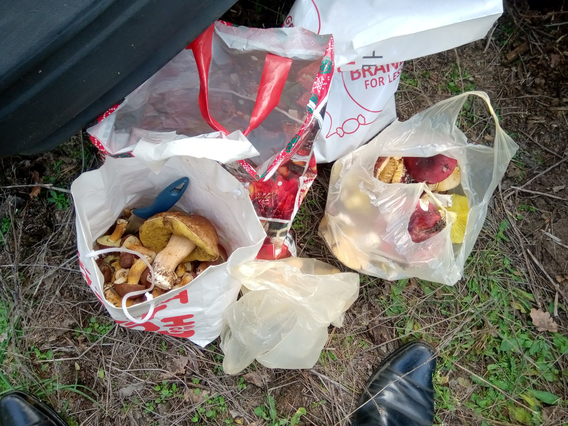 В субботу выехали прогуляться по лесу. Целью был больше пикник, но и по грибам пробежались. Людей и машин больше чем грибов. Но все бродящие по немного насобирали. В основном польские.