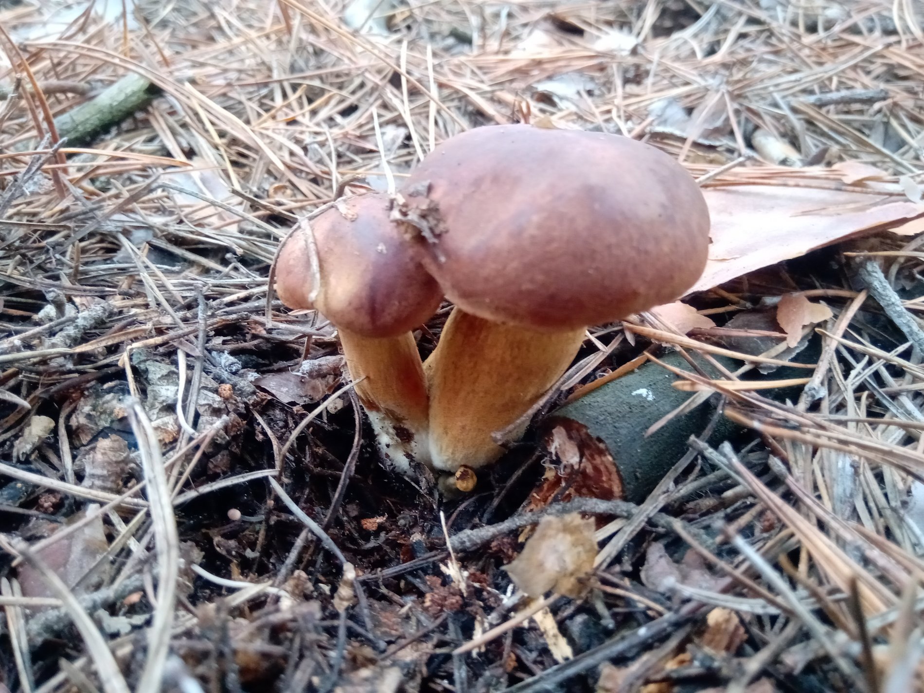 Первый вообще, не имеет ни какого запаха. Дома сорвал шляпку - пластинчатый. Второй, вроде как черная лисичка.