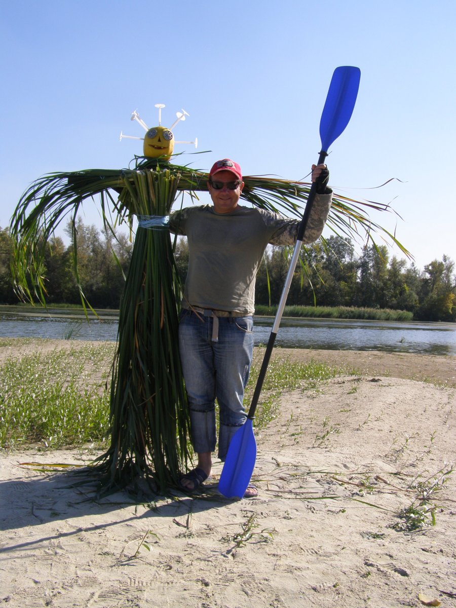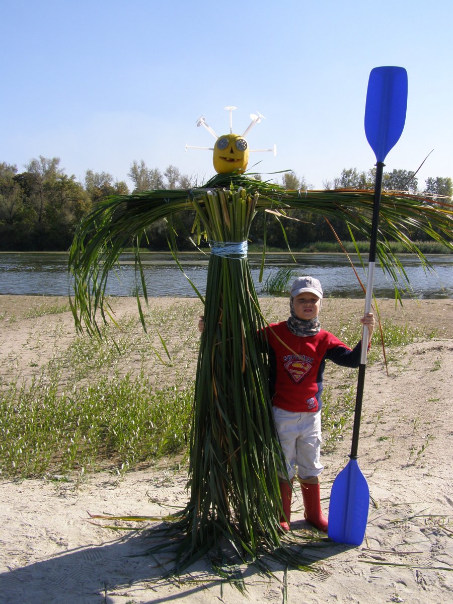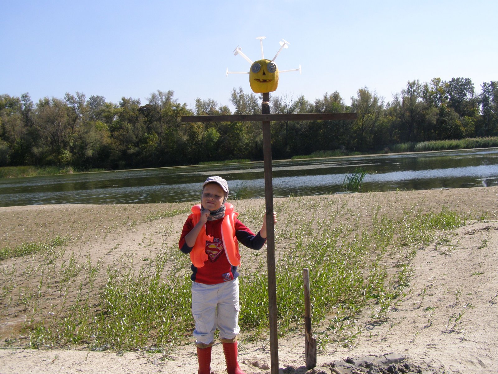 В субботу,всей семьёй,отправились на остров скелета проверить "клад" и "проведать" его хранителя, известного из прошлых отчётов . Прибыв на "секретную" точку(отмель за островом Каменистый) обнаружили что место нашего клада Нептун скрыл бурными водами Днепровской пучины (весенний уровень воды чуть больше чем обычно). Подправив каркас сторожа клада отправились искать приключений .