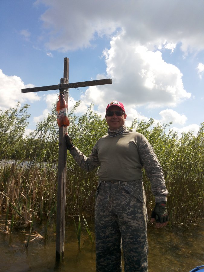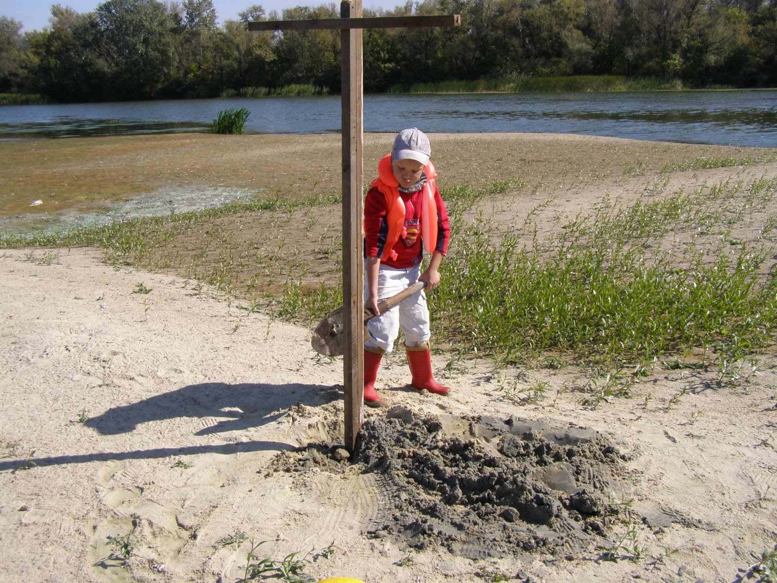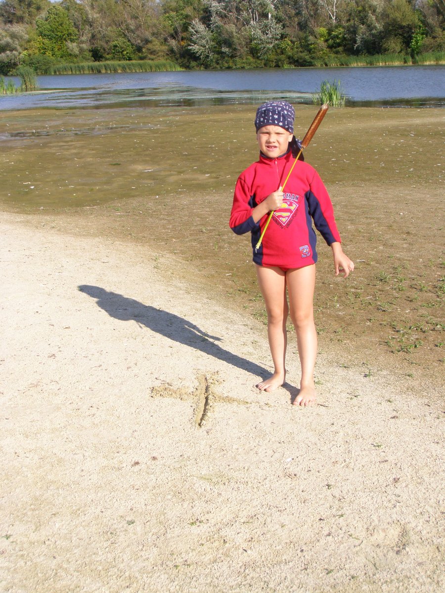 В субботу,всей семьёй,отправились на остров скелета проверить "клад" и "проведать" его хранителя, известного из прошлых отчётов . Прибыв на "секретную" точку(отмель за островом Каменистый) обнаружили что место нашего клада Нептун скрыл бурными водами Днепровской пучины (весенний уровень воды чуть больше чем обычно). Подправив каркас сторожа клада отправились искать приключений .
