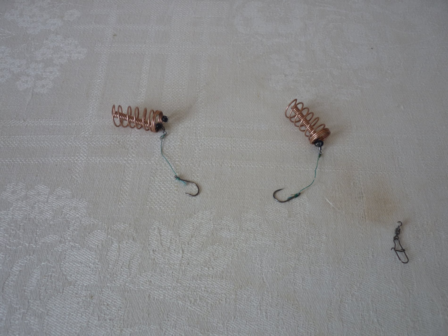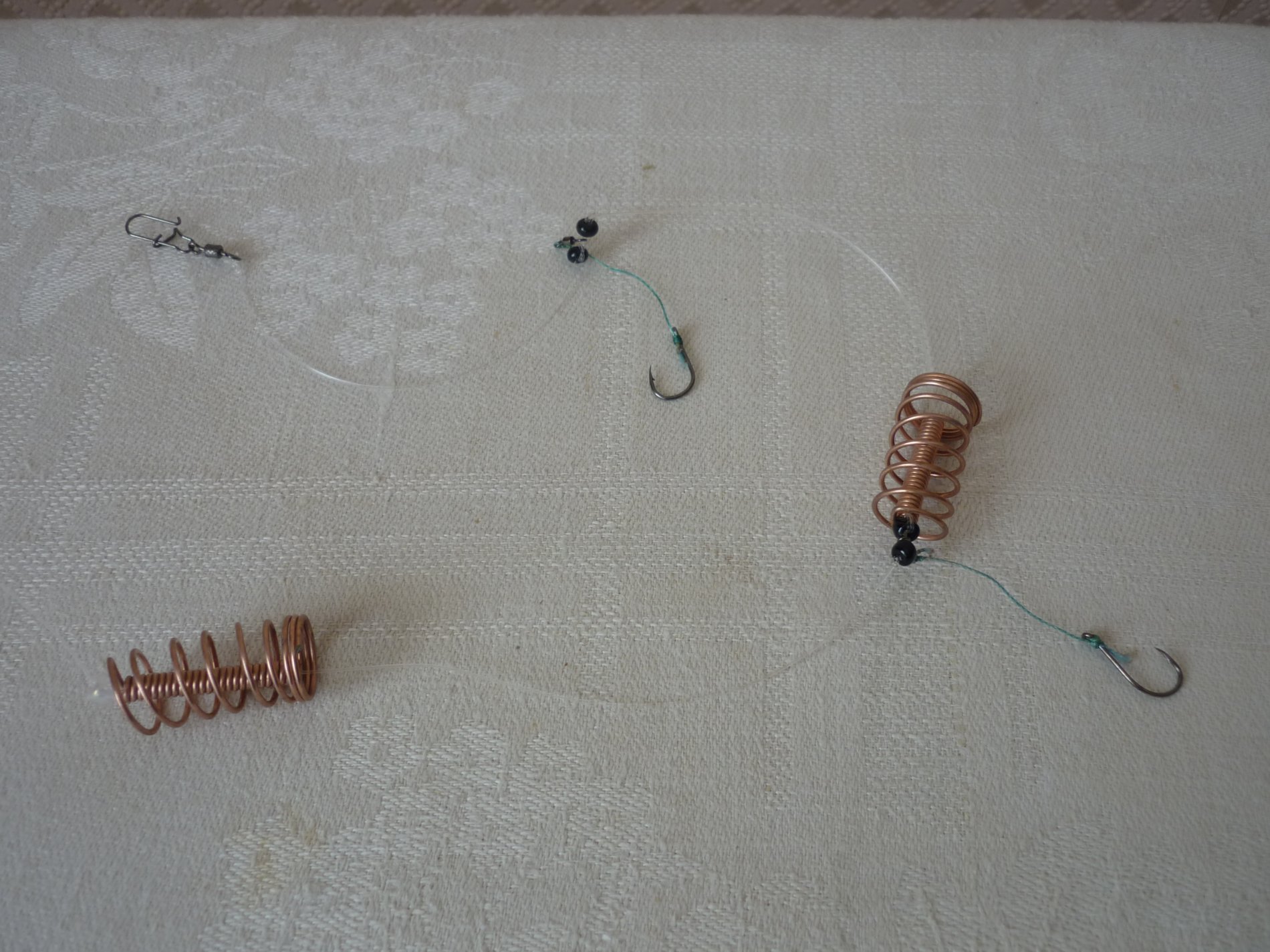 Всех приветствую! Тоже ловлю на данную снасть с громким названием. Начинал на заводские варианты из 3 пружинок и 3 поводков, но сейчас остановился на оптимальном для меня из 2 пружинок и 2 поводков, сделав снасть более чувствительной. Вяжу снасть из флюорокарбона 0.4мм. В отличии от заводской - кормушки скользящие, их движение ограничивают бусинки, а между бусинками ставлю маленькие вертлюжки к которым крепятся поводки с крючками. Свободный ход кормушки около 10 см. - этого хватает для обнаружения поклёвки, после чего рыба сама самозасекается. Крючки использую 8 или 9 номер для отсечки мелочи. Главное - чувствительность этой снасти, за счёт того что крючки привязаны не к кормушке рыба не чувствует сопротивления кормушки и груза, а выбирает свободный ход лески. Ну и в зависимости от условий ловли можно менять груз. Я использую груз 50 - 60 гр. В моих условиях ловли с лодки в местах с разным типом дна данная снасть работает хорошо, а самое главное не путается поводок за основную леску. Прикормку в пружины делаю с таким расчётом, чтобы она вымывалась за 10 - 15 мин. На 1 фото снасть когда заброшена, на 2 фото макс. ход пружин, на 3 фото среднее положение.