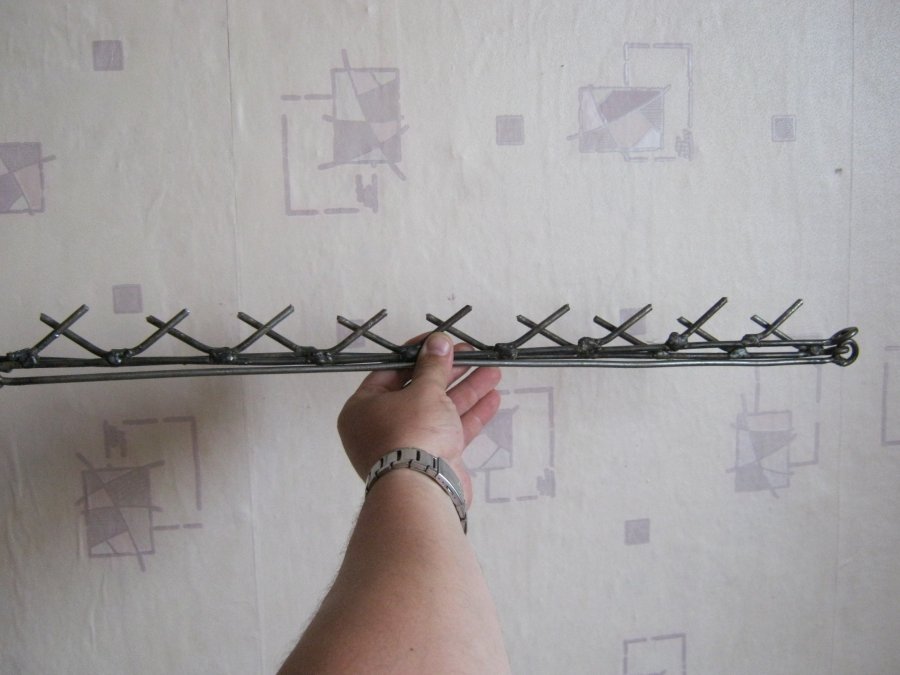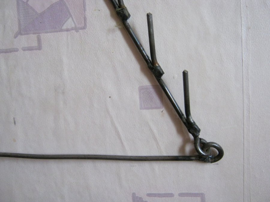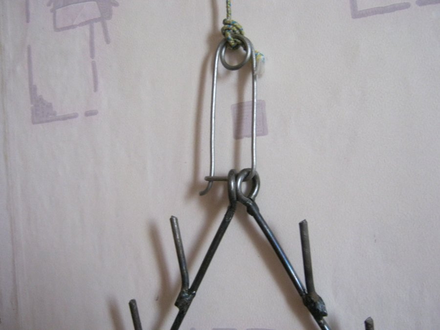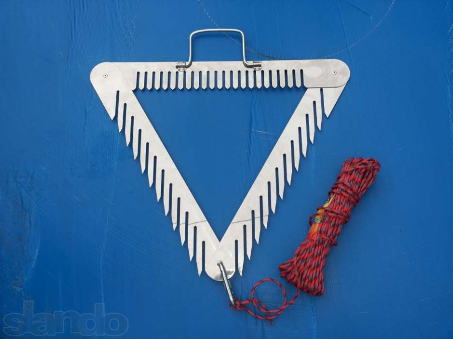 Проволока пятёрка, длинна в сложенном состоянии 65см. вес 520 грамм... сверху за кольца пристёгивается верёвка с карабином, вот только бросать нужно приловчится:D