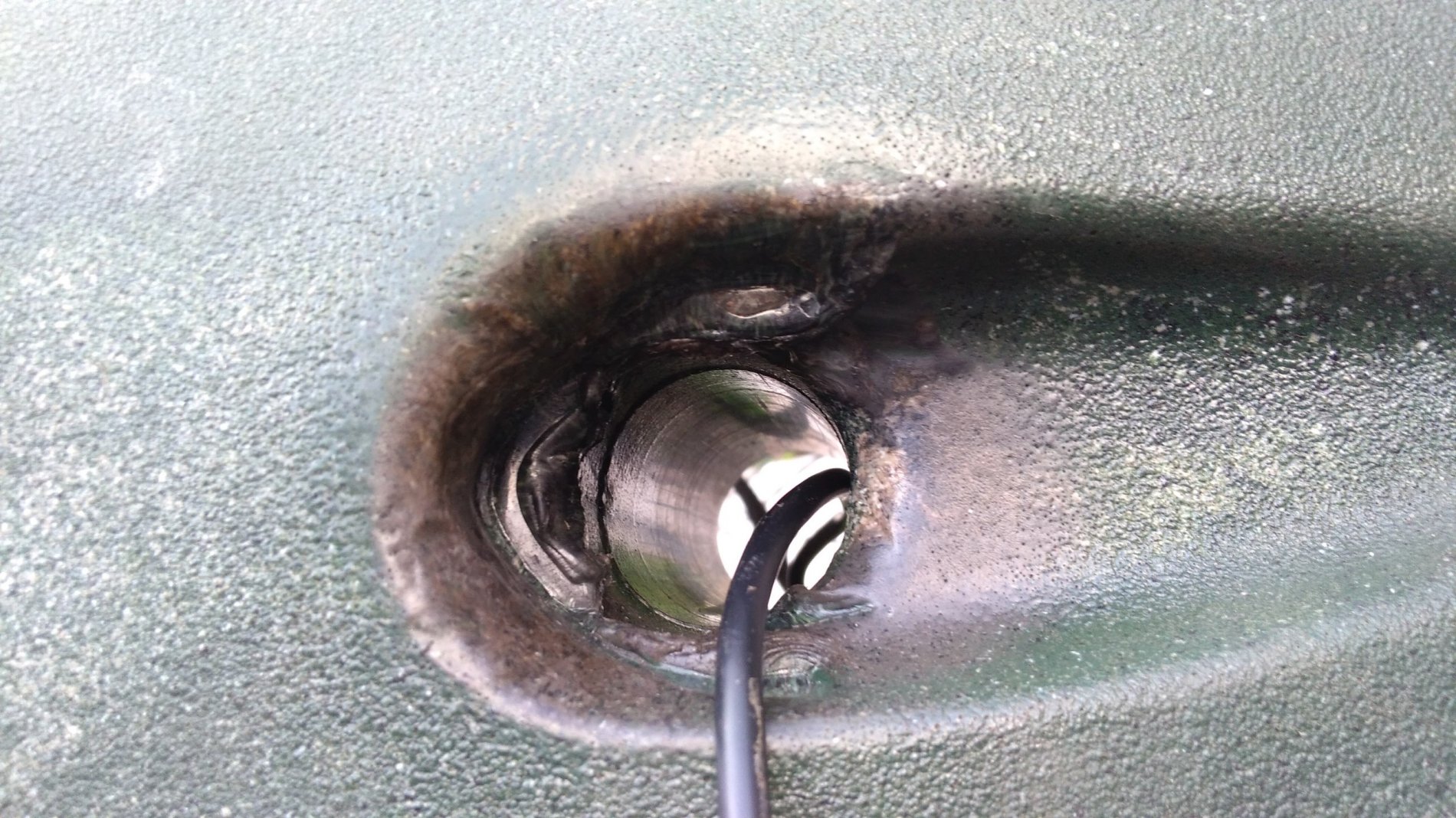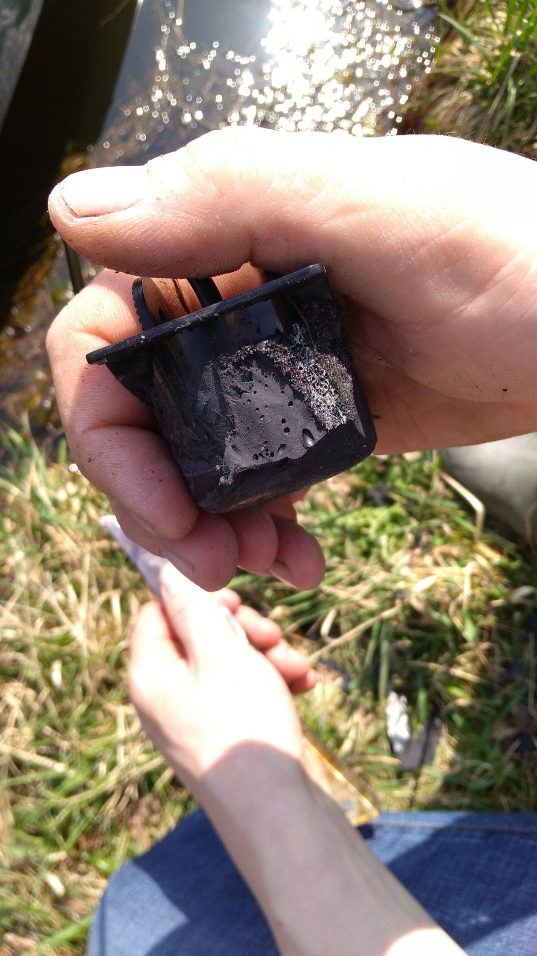 А вот как выглядел тот герметик, на который я "садил/приклеивал" датчик к днищу внутри каяка.