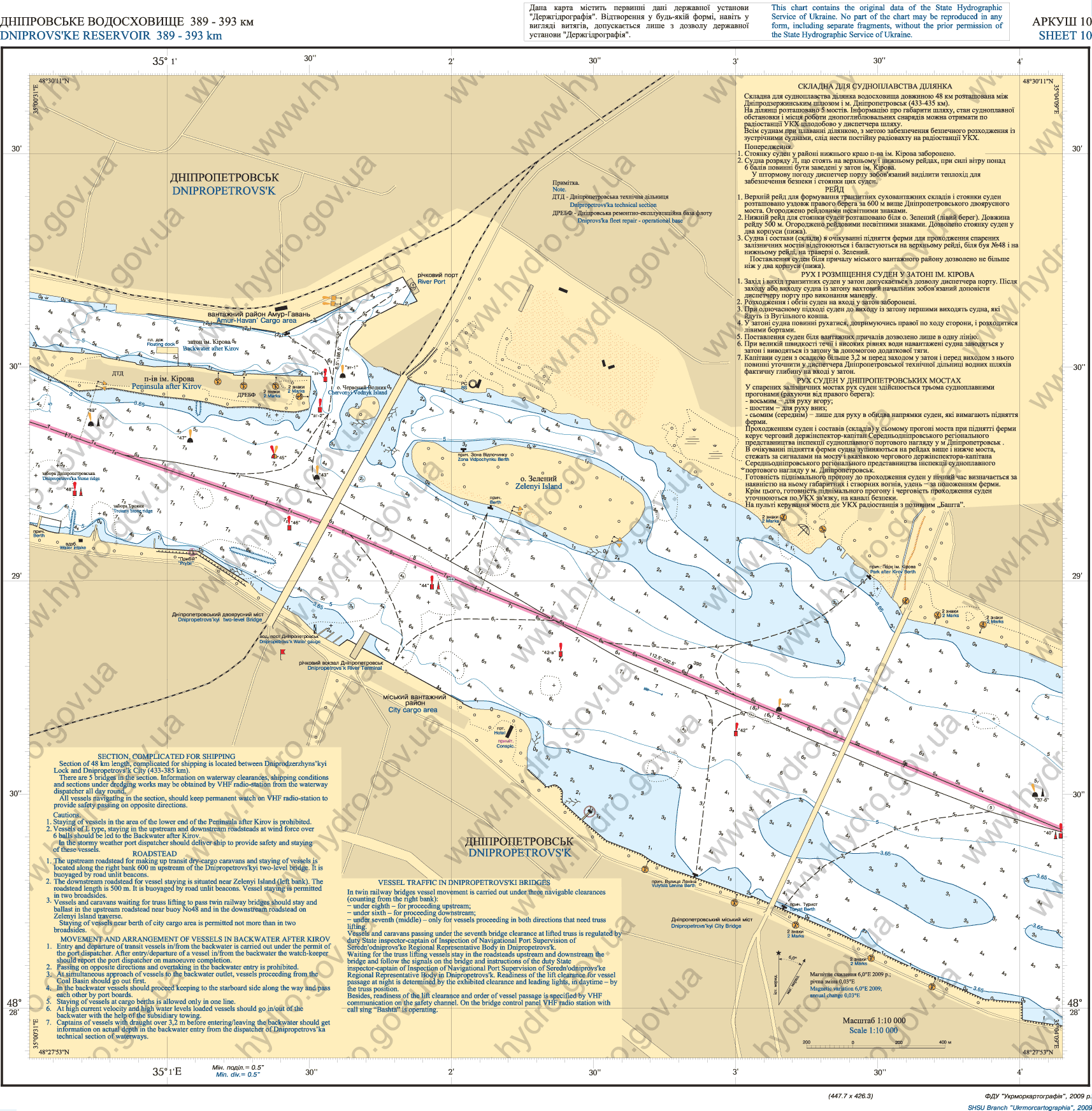 Карты глубин Кременчугского и Днепродзержинского водохранилищ.