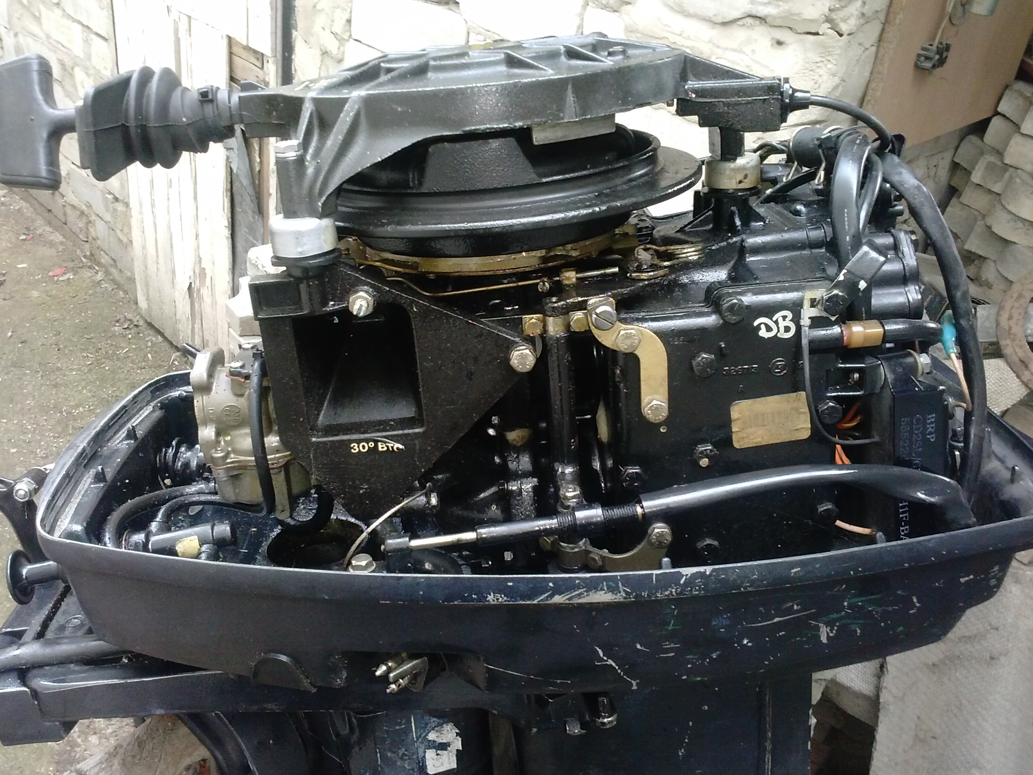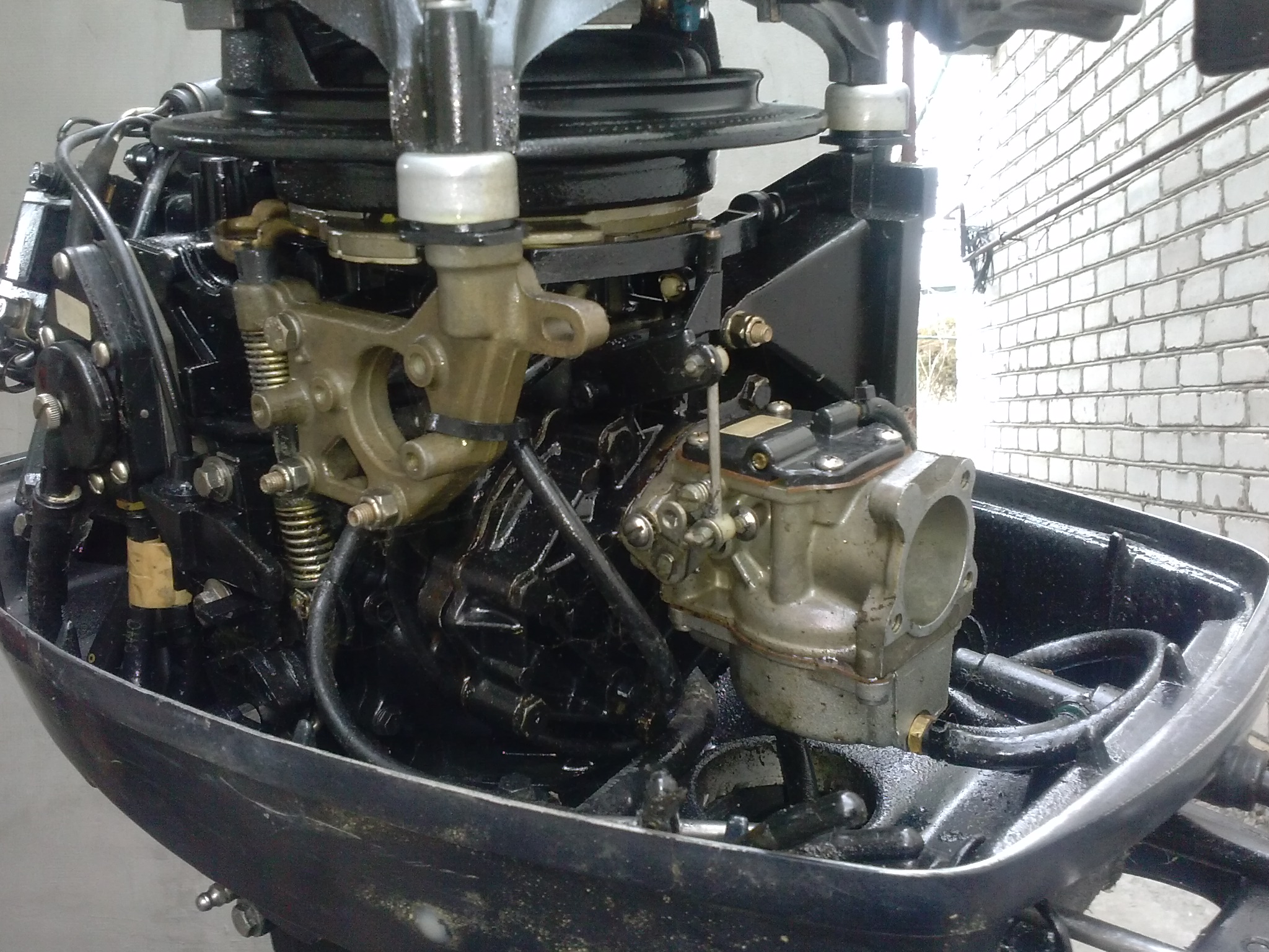 У меня Эвинруд 30. На фотке, его видно. Чихает иногда и мой, когда холодный, а подсос не вытянут. Если на холостом глохнет, я бы свечи глянул для начала. Потом уже карбюратор. В зажигании, там может глюкнуть механизм момента опережения; есть там одна втулочка. Думаю, это не то. Надо понять: если газ дать, нормально работает? Не троит?