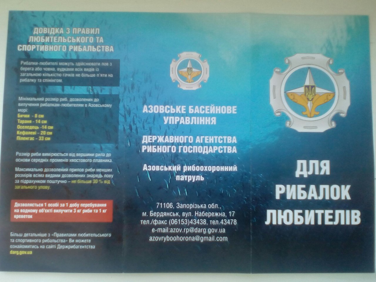 Сотрудники Азовского рыбоохранного патруля начали проводить массово-разъяснительную работу среди рыбаков-любителей. ПРАВИЛА ЛЮБИТЕЛЬСКОГО И СПОРТИВНОГО РЫБОЛОВСТВА должны быть чётко донесены тем, кто хочет полакомиться морскими дарами в пределах установленных норм и лимитов.