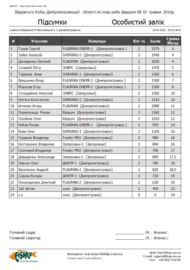 Відкритий кубок Дніпропетровської обл. по лову риби фідером 2016