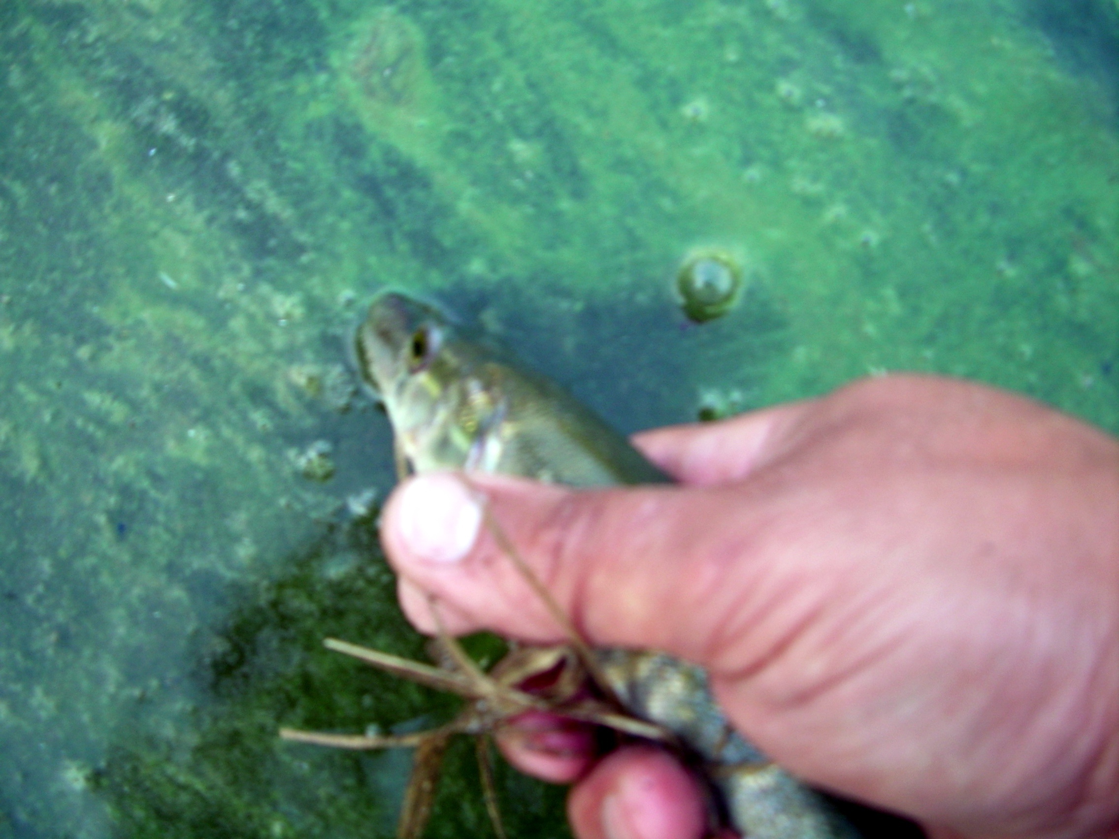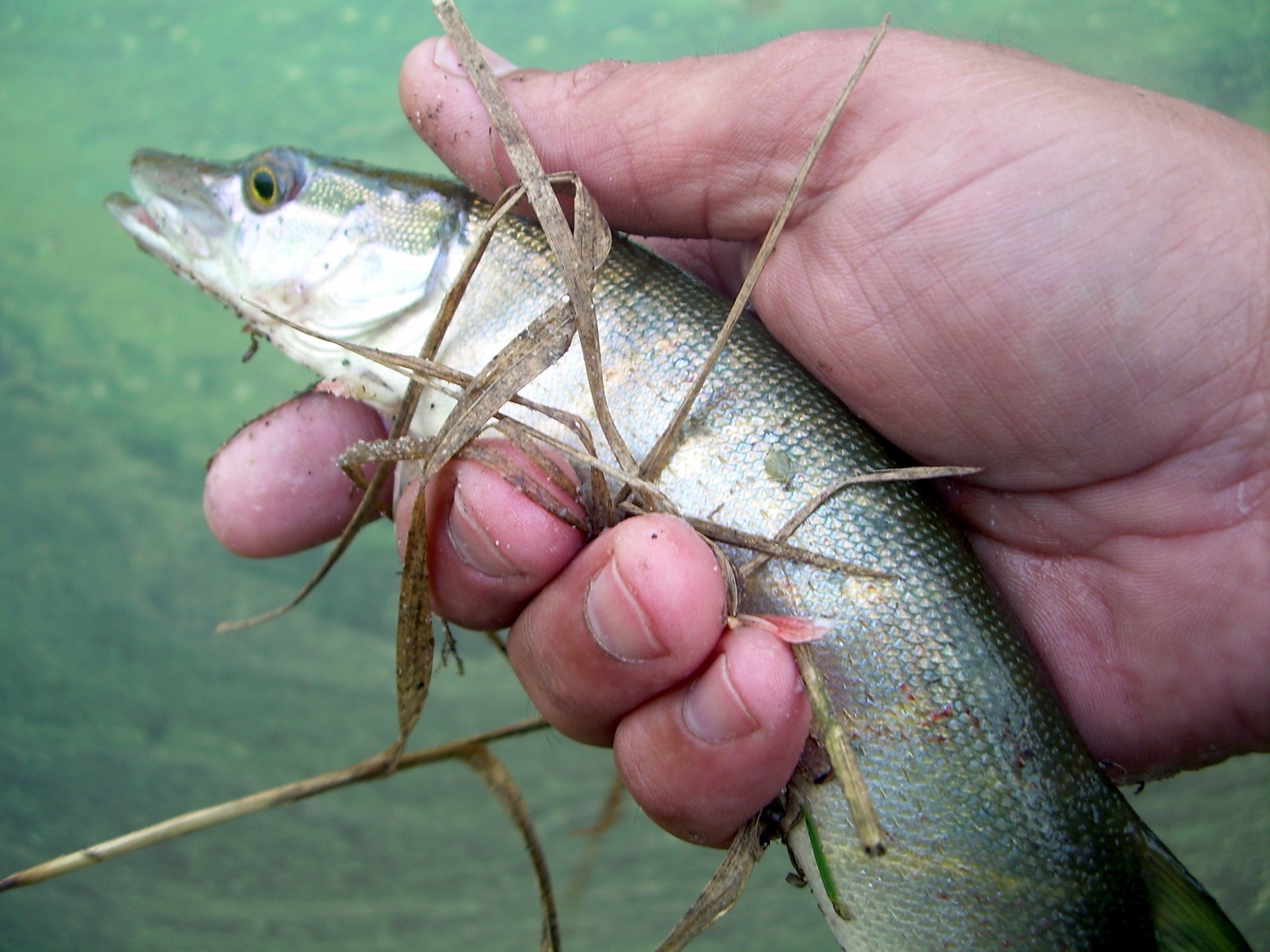 Минут 5 наблюдаю как щучка длинной см. 7 терзает малька длинной см. 4, кстати Котыкмуркотык - держала его поперек(хасо, хасо, никричите) (сделал фото 2, но рассмотреть что-то нельзя, а в поляр. очках было хорошо видно).