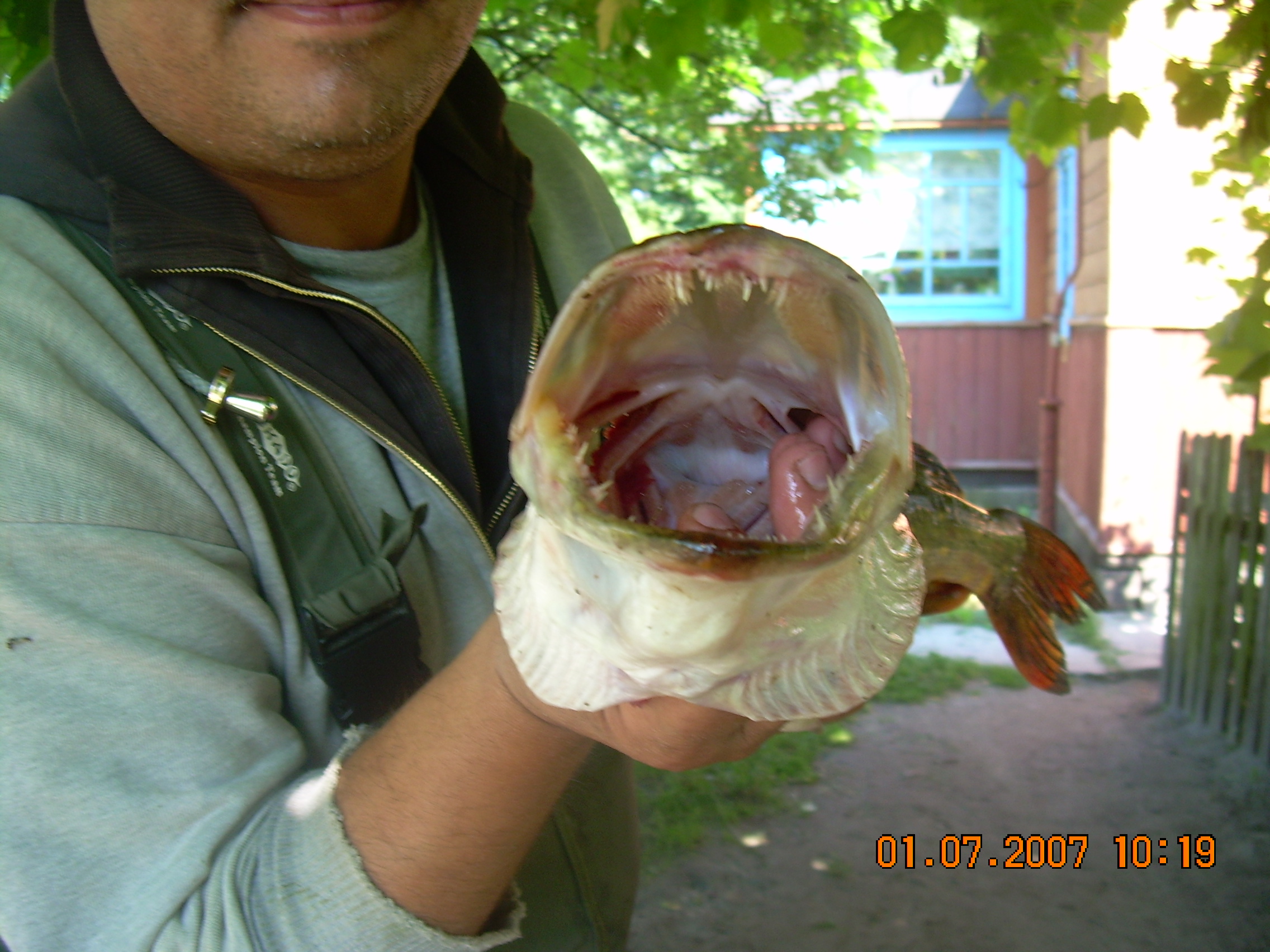 Привез меня домой, доця как раз проснулась показал ей в окно «лыбку», положил ее возле крана на улице и пошел в хату за фотиком и ножом, меня не было 5 мин. от силы, выхожу – нет счучки. Обошел все вокруг – даже следов нет (а двор огорожен 1,5 м. сеткой, своих котов у тещи нет), дааа Котыкмуркотык сильны твои сородичи – утащить щуку минимум 500 гр. через забор:gi-gi: , разберись-ка с ними:gi-gi: .