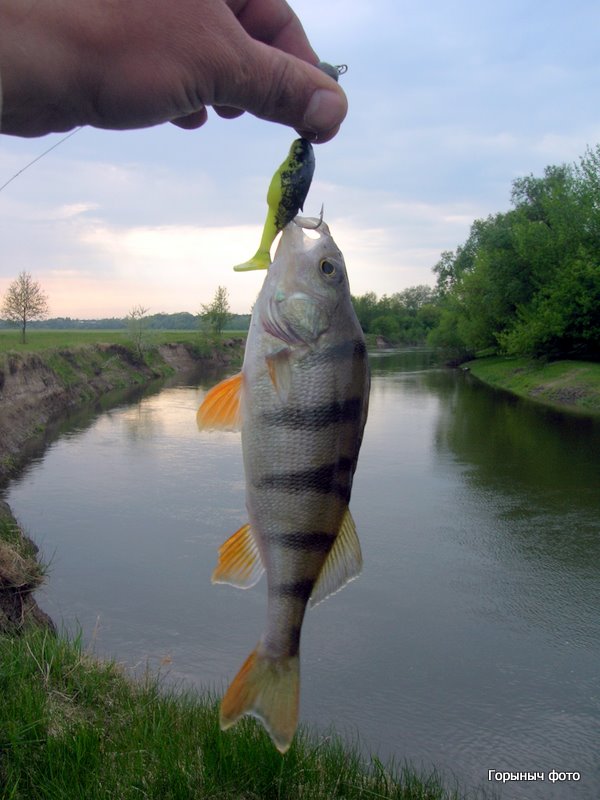 У меня сначала непруха: при очередном забросе и проводке на попер расстегнулся карабин и "юзурик" уплыл по Горыни помахав мне хвостом, ну и фиг с ним, он мне не нравился :)