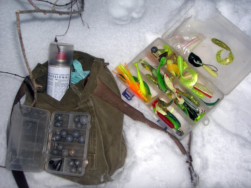 Добирался маршруткой – своей и один не рискнул. На первой точке в 6-50, давно хотел попробовать светлячок на кончик спиннинга – вот и случай подвернулся. Прикрутил его скотчем еще дома, а сломал и помял уже на реке. Светился сразу как-то слабо и особого эффекта не ощутил –место знакомое и спин позволяет чувствовать проводку в руку…