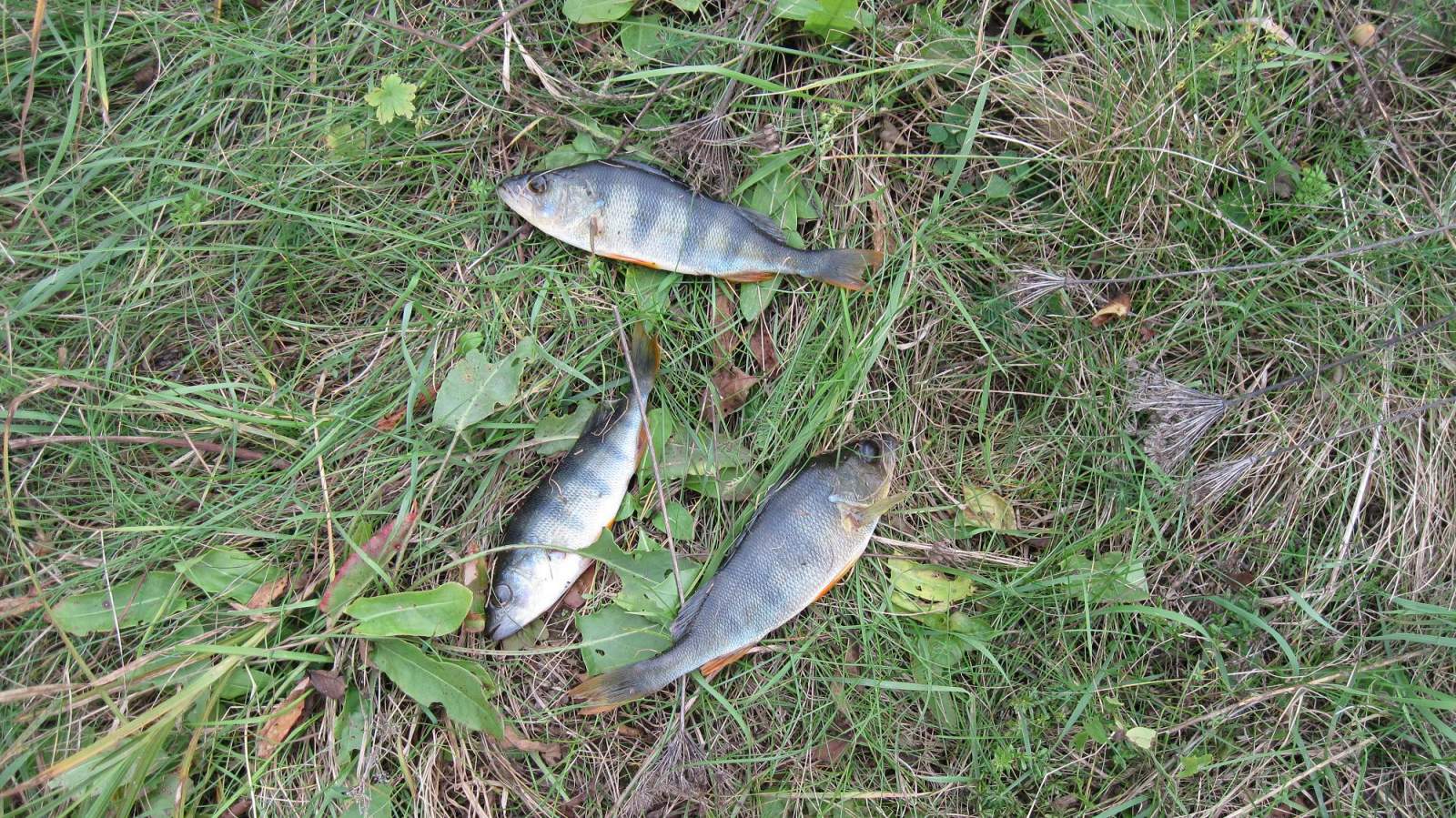 Витягнув човен щоб підсихав, а сам користуючись можливістю вирішую паро хвилин кинути на мало розловленій водоймі. Берег був витоптаний і на воді виглядало чимало коряг . Перша проводка вздовж комиша і сідає окунь! Ну думаю!- не все так погано і в східний вітер риба ловиться. За 15 хвилин вдалось витвічіть ще двох і все.