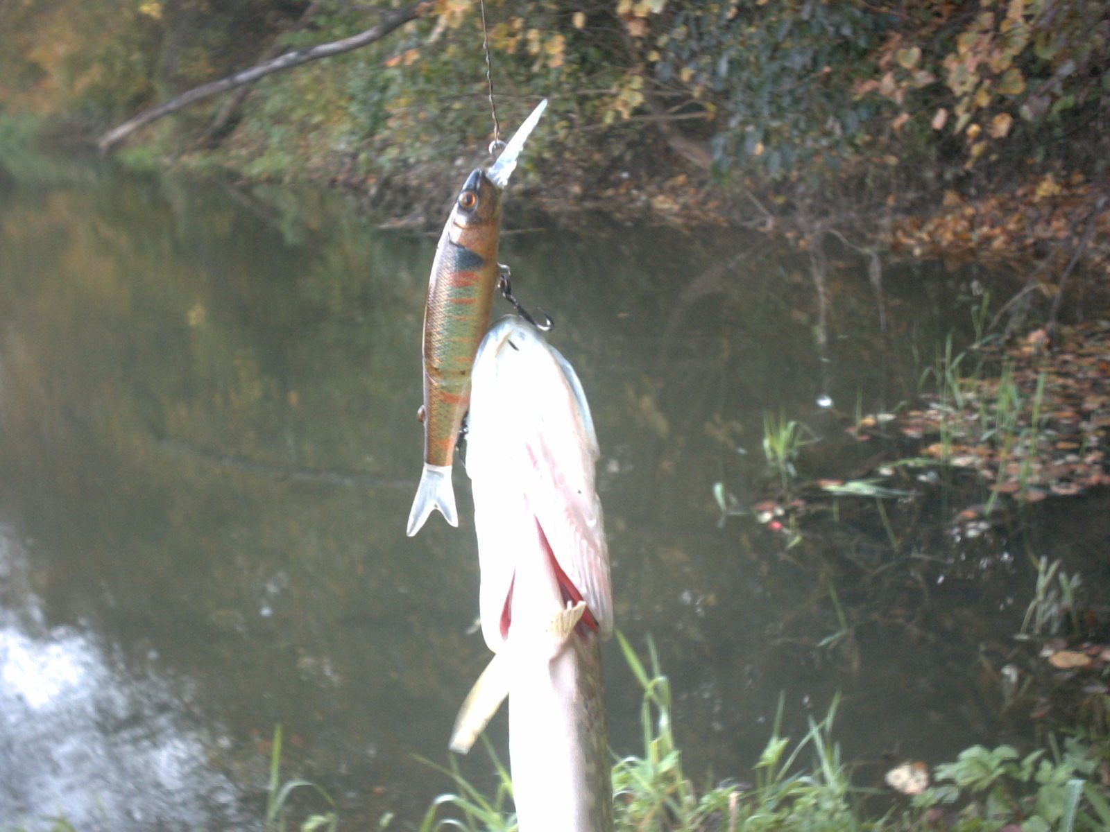 На следующей точке в коряжнике при акуратной проводке, сильный удар, мощное сопротивление и срез флюра... Теперь не знаю пользоваться ли им дальше, поклевок явно больше, особенно окуней, а щука его таки грызет...