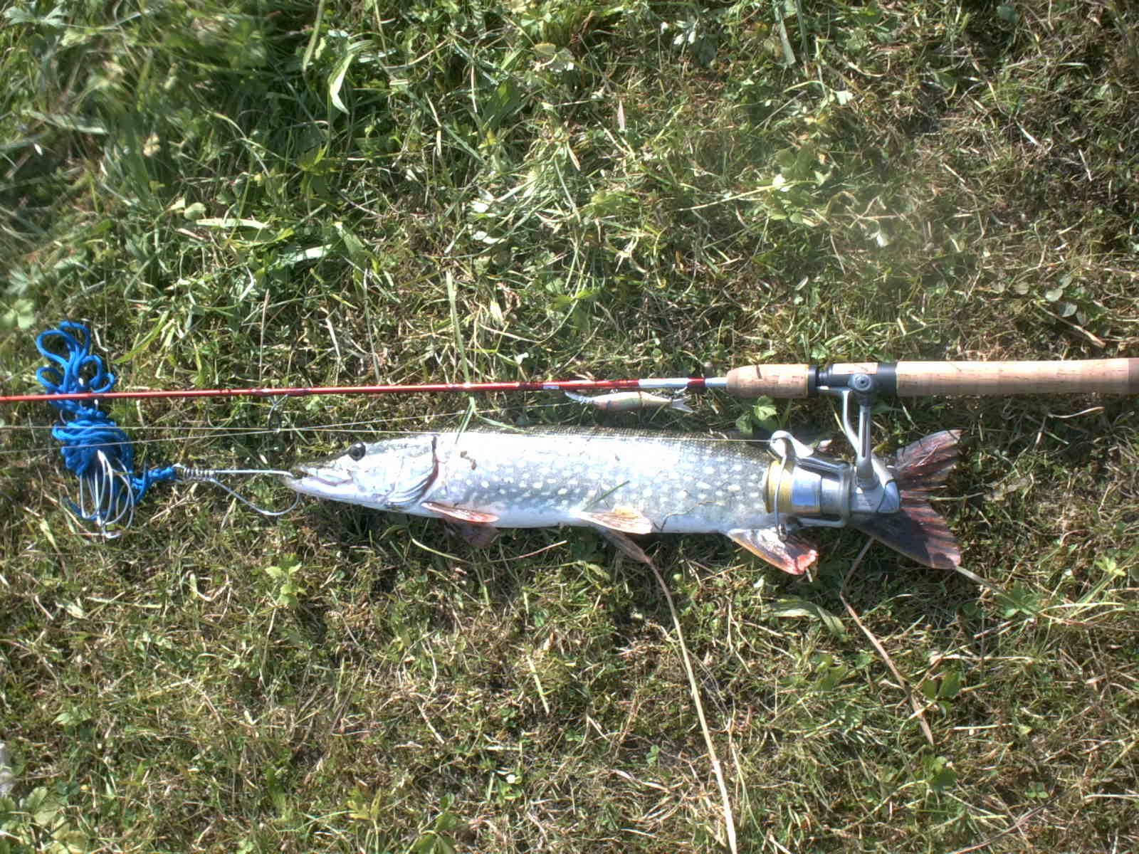 Не витримують нерви в мене та вирушаю в бій! Декілька метрів пройшов, декілька разів закинув...зміна приманок, знову прохід по будякам та знову до праці... Отже продолавши десь 1 км. вирішую змінити наданий пріоритет резині і на повідок ставлю Аглію №2 від Мепс(мідну). Декілька кидань і знову нічого, але бачу активність зубатої красуні по під протилежним берегом і блешня летить туди. Йопт, два оберти і щуця сідає мені на блешню.