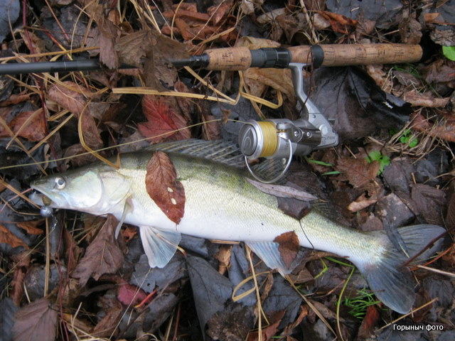 Я конечно сделал еще десяток забросов , но ничего. Олег тоже словил судака, но меньшего – 980 грамм. Он остался, поставил его на свое место – был еще удар и все…