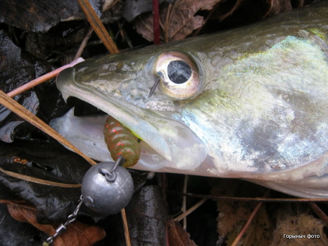 В неділю вирішили рванути на Горинь саме на щуку. Почали ловити на джиг і річка відразу нас порадувала. Кілька проводок і відчуваю на тому кінці гарну рибину, підводжу до лодки і бачу із здивуванням гарного окуня:wo_kakaya:, потім зваживши - 850гр. Гарно почавши рибалку стали ловити з ентузіазмом. Цілий ранок були удари та було зловлено 4 щуки, всі біля кілограма. Правда вдень кльов значно послабився і ми бачили тільки один удар. Вже під вечір на останньому місці зловив ще одну щучку на 400гр. та випустив назад в річку оскільки трофеїв було вдосталь. Цього разу річка порадувала оскільки такого результату відверто не чекав:gi-gi:.