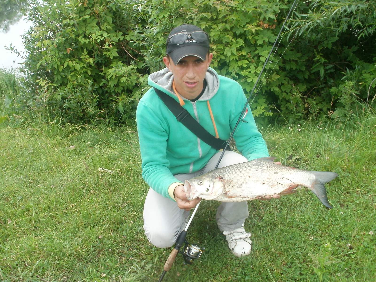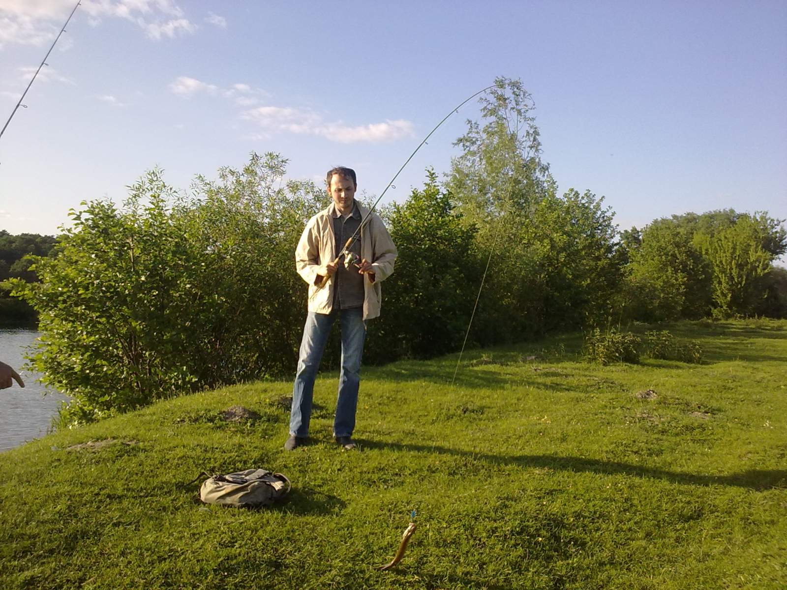 В суботу з батьком і швагром їздив на горинь з ночівлею в район Азоту. Відразу по приїзді я розклав спінінг, поставив червяка на офсєтніку і пішов обловлювати коряжник. На другому забросі глухий зацеп, зламав кручка, шнур 0.08 витримав. Після чого ставлю воблєрка strikepro і на другому забросі удар- голавлік десь на 300 грам опиняється на березі. Пізніше перейшов на старицю, там зловив тільки окуня грам на 200. Потім почало темніти і я пішов на річку. Розклав фідера і ще закинув дві удочки на росовика. Результат- два соміки - карандаші, які відправилися підростати. Десь о п"ятій годині ранку я взяв спінінг і пішов на старицю. Покидавши там десь хвилин 30 на мікроджиг незаробив жодної покльовки, тоді вирішив піти на річку. На річці побачив як жерех б"є малька. Поставивши воблєр мінов почав пробувати різні проводки і десь через хвилин 10 перший жерешок був на березі . Пізніше ще зловив два по грам 300, піля чого почався дощ і я пішов в машину, де й заснув. Проккинувшись в 9:45 пішов на старицю де зловив щучку грам на 300. Далі вирішив знову піти на річку і покидати на жереха. На третьому забросі удар і жерешок на березі. Наступний заброс- один оборот катушки- удар і відразу риба пішла на глубину, стянувши метра два шнура з катушки, вдалося розвернути і відразу вивести на поверхню води й підтянути до берега, де й взяв рукою за жабри- жерех 2,2 кг вагою і 58 см. довжиною. Потім зловив, ще два жерешка по 500 грам. Після чого поіхали додому.