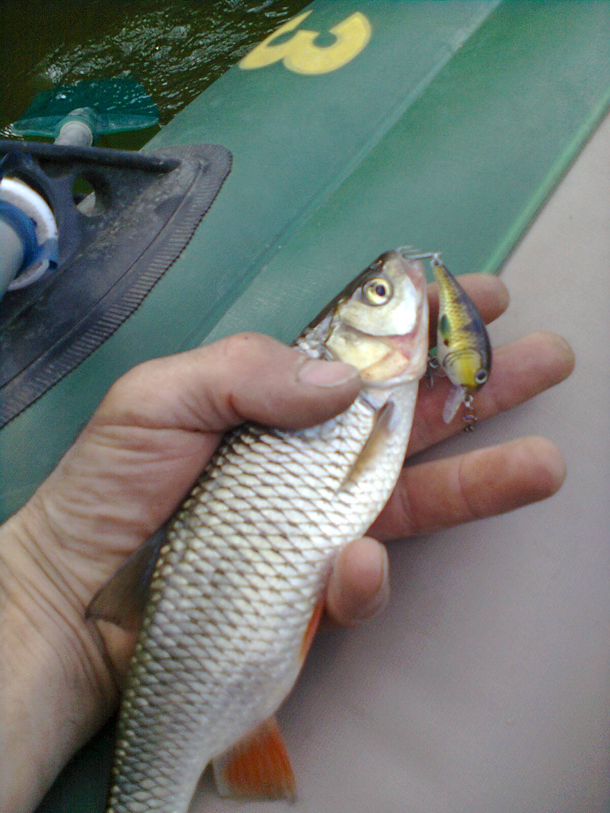 Діма обловиввся щучкою, окунем і верховодкою - на 1 приманку 3 вида риби ) і одну не засік (схоже на ляща).