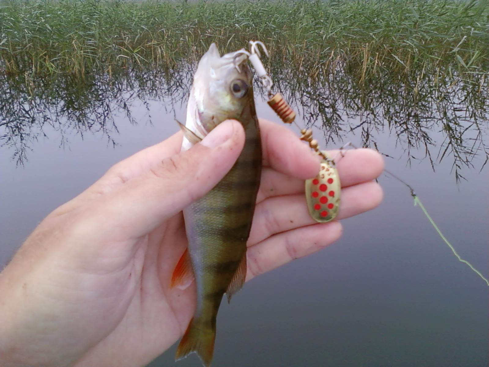 Щодо спінінга, то меппсовські вертушки принесли мені кілька маленьких окунців, один з них на фото. Нічого особливого, на вудочку траплялися навіть більші. Взагалі, Світязь не зовсім «спінінгова» водойма. Тобто, хижак є – щука, окунь, навіть судак і сом, але дуже складно виявити локальні місця стоянки, хижак розпорошений на великому просторі. Здебільшого, це прибережне мілководдя до 3-4 м, де трапляється зілля і крутится дрібна риба. Плюс, великі глибини, перепади температури води…Якщо ви хочете половити чисто спінінгом, варто надати перевагу іншим озерам, яких біля Шацька чимало.