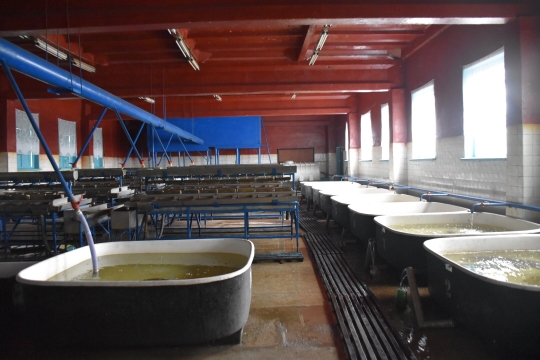 Дніпровський осетровий виробничо-експериментальний завод імені С.Т. Артющика у 2017 році виростив 3 млн. молоді стерляді Стратегічно важливе підприємство для розвитку рибної галузі, Дніпровський осетровий виробничо-експериментальний завод імені С.Т. Артющика, у 2017 році отримав 3 млн. молоді стерляді. Завод завершив перший етап інкубаційної кампанії з відтворення осетрових видів риб (стерляді), завдяки впровадженню новітніх заходів та технологічних прийомів вдалося підвищити вихід личинок від ікри на 10-15 %, порівняно з 2016 роком. В 2017 році було отримано 44,2 кг ікри та закладено її в інкубаційні апарати для отримання молоді стерляді – осетрового виду риб, що занесено до Червоної книги України. У 2016 році кількість отриманої ікри склала 42,6 кг. В сучасних умовах Дніпровський рибзавод набув особливого статусу, оскільки, займається збереженням осетрових видів риб, внесених до Червоної книги України. Запроваджуючи нові методи ведення виробничих процесів, Дніпровський осетровий завод досяг вагомих результатів у вирощуванні та відтворенні аборигенних осетрових видів риб, має високі показники, і з кожним роком їх підвищує. За період роботи Дніпровського рибзаводу у водойми загальнодержавного значення випущено понад 52 млн. екз. молоді осетрових риб. Молодь, яка досягає до 40-45 міліграмів, підрощують в критих басейнах. Їх на заводі налічується 80 штук. В середньому, басейн вміщує 12 тис. молоді. В цих басейнах риба акліматизується до випуску у природні умови. Кормова база вирощується також на заводі. Заступник голови Херсонської ОДА Євген Рищук та директор Департаменту агропромислового розвитку Олександр Паливода завітали на завод у травні в середині процесу бонітування. В ході візиту вони оглянули цехи заводу та ознайомились з усіма етапами вирощування стерляді, починаючи з відбору ікри. Директор заводу Віталій Плугатарьов розповів, що ікру у самок стерляді отримують прижиттєво (методом зціджування) після чого її запліднюють та розміщують на інкубацію в спеціальних інкубаційних апаратах. «Сьогодні, коли кожна самка має велику цінність, з рибою поводяться дуже бережно. Після отримання ікри риба продовжує нормальний життєвий процес. Для стимулювання дозрівання статевих продуктів плідникам роблять гіпофізарні ін’єкції. Показник виходу личинок з ікри складає близько 50%», - пояснив він. Наразі триває підрощування личинок в басейнах та паралельно проводиться підготовка ставів і їх зариблення личинкою. Підрощену молодь планують випустити в липні 2017 року в пониззя Дніпра в районі Широкого плеса. Очікується, що показник випуску молоді у 2017 році буде на 3-5% більшим, ніж у 2016 році (було випущено цьоголіток стерляді у водойми загальнодержавного значення 1 513 205 екз). Нагадаємо, Дніпровський осетровий виробничо-експериментальний завод імені С.Т. Артющика знаходиться у Херсонській області. Основним напрямком діяльності Дніпровського рибзаводу є вирощування молоді осетрових видів риб та випуск її в Пониззя Дніпра, Дніпро-Бузький лиман та інших водних об'єктів загальнодержавного значення для відновлення чисельності цих реліктових видів. http://darg.gov.ua/_dniprovsjkij_osetrovij_0_0_0_4039_1.html