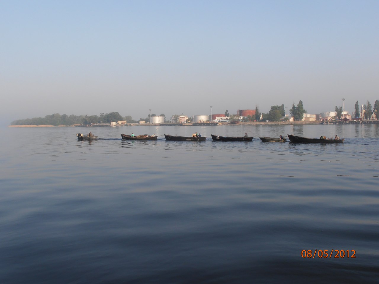 Как я понимаю в нерест запрещено ловить всем, как рыболову любителю так и промысловикам. Но как видим на следующих фотографиях, в Херсоне напротив нефтегавани ловят промысловыми сетями толстолоба.