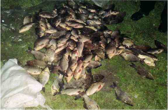 При задержании обнаружены и изъяты: промышленное орудия лова - мисинова сетка - 3 ед. Свежая рыба - карась серебристый 13 ед., Молодь сельди - 41 ед., Молодь толстолобика - 9 ед., Молодь сазана - 2 ед. Общим весом - 10,3 кг. То есть браконьеры вылавливали малька. О каких же рыбных ресурсах может идти речь, если в наших реках браконьеры уничтожают все живое, не гнушаясь вылавливать едва подросшую рыбу?