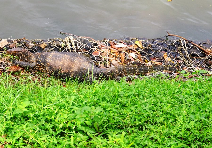 Ну коли кому-то нравится продолжу. А в центре Шри-Ланки есть старинный город Канди, бывшая столица государства. И в центре города есть рукотворное озеро. И рыбы там - карпа, видимо - невидимо. Только вот ловить их нельзя никому, ибо священные они считаются для буддистов. Ну а вот эти твари, лежащие в центре города на берегу озера об этом не знают :-) потому кушают коропов Да, забыл же само озеро показать, это оно одно, с разных точек