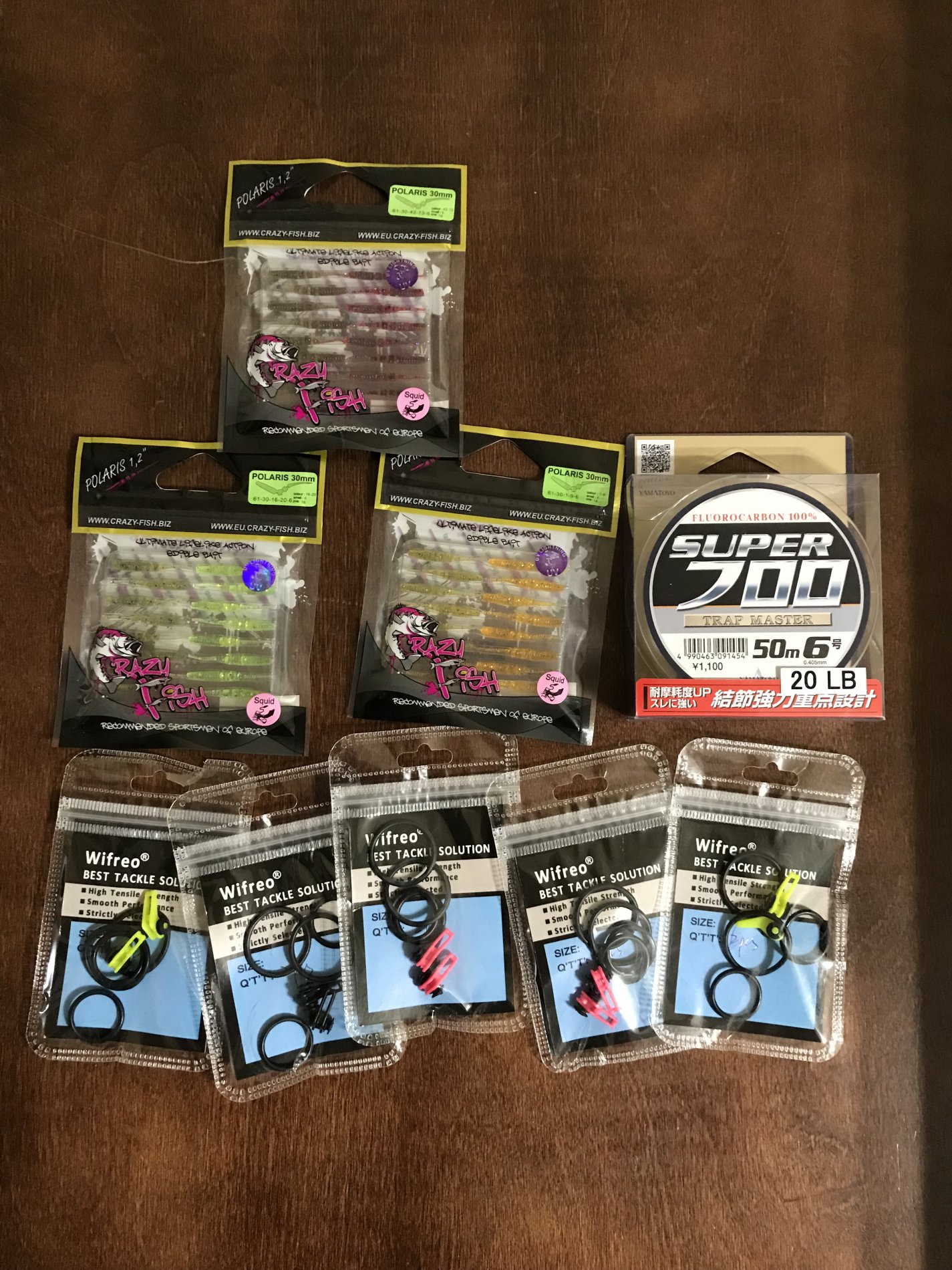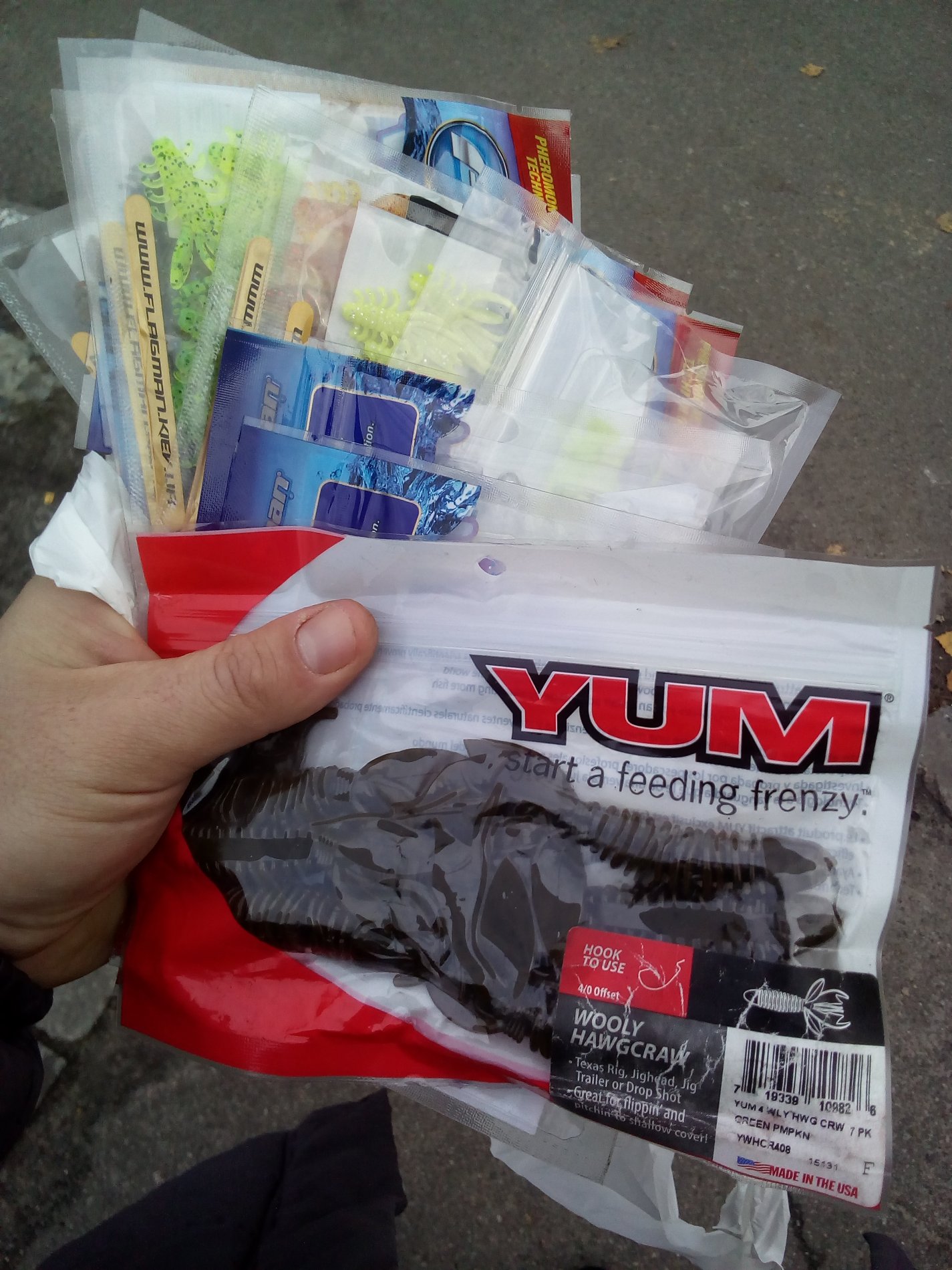 Мне тоже малость приехало разнокалиберного силикона, воблерков, коробочек и расходничков.