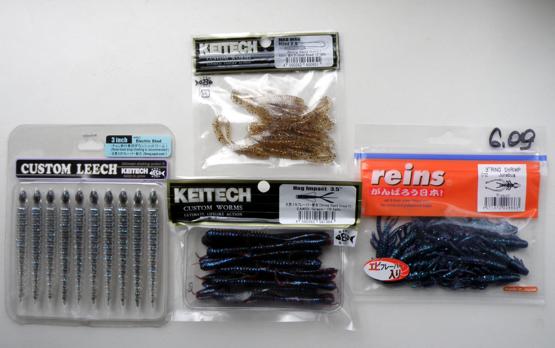 Новинки от Keitech - Mad Wag в размере 2,5" и Custom Lech, а также проверенные Hog Impact и Ring Shrimp от Reins.