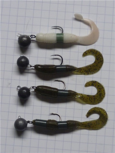 В водоемах без течения так же использую вариант №1, приманка очень хорошо работает во время прохождения в столбе воды, в таких случаях полезно использовать легкие бошечки весом 0.5 - 1.5г., проводка: волнообразки, паузы и различные комбинации этих движений. Для джиггинга тоже полезно применять:gi-gi:, часто когда хишник, не активен именно джавиком можно выловить хвостик-два, на соревнованиях полезно обратиться за помощью к этой приманке, но без фанатизма...