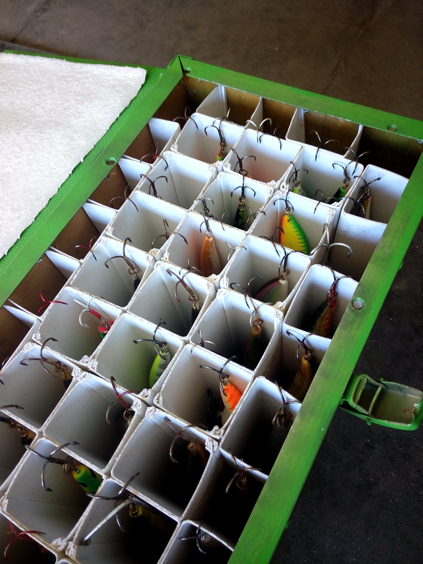 Для удобства при рыбалке сделал многое, но больше всего доволен ящиком для воблеров. Вместил в себя то, что находилось в двух ящиках. Высота ящика 21 см. Ячейка 4х4 см.