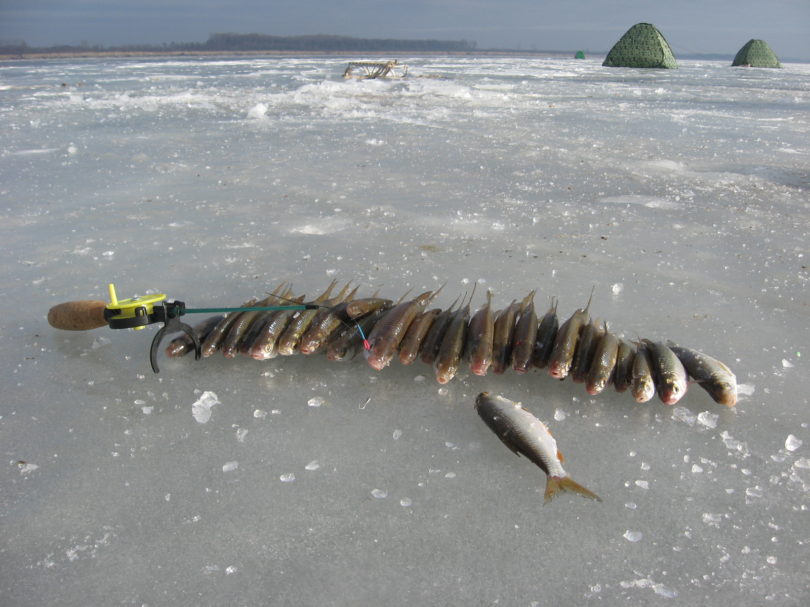 Чуть не забыл про головне, поймал я около пяти киллограм тарани, ловил на мормышку у товарищей улов такой же они ловили на "грузовку".