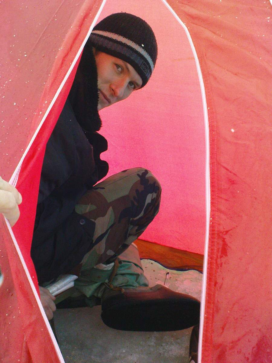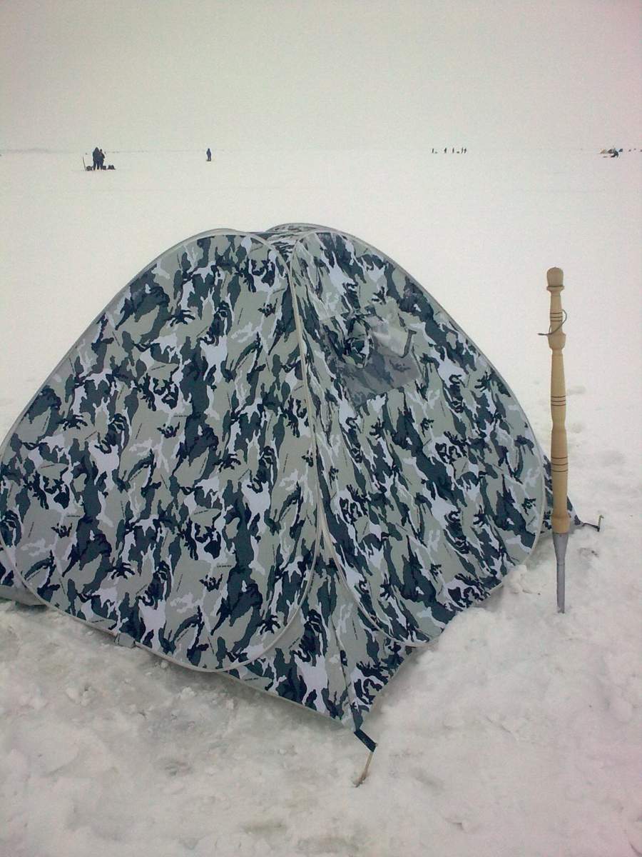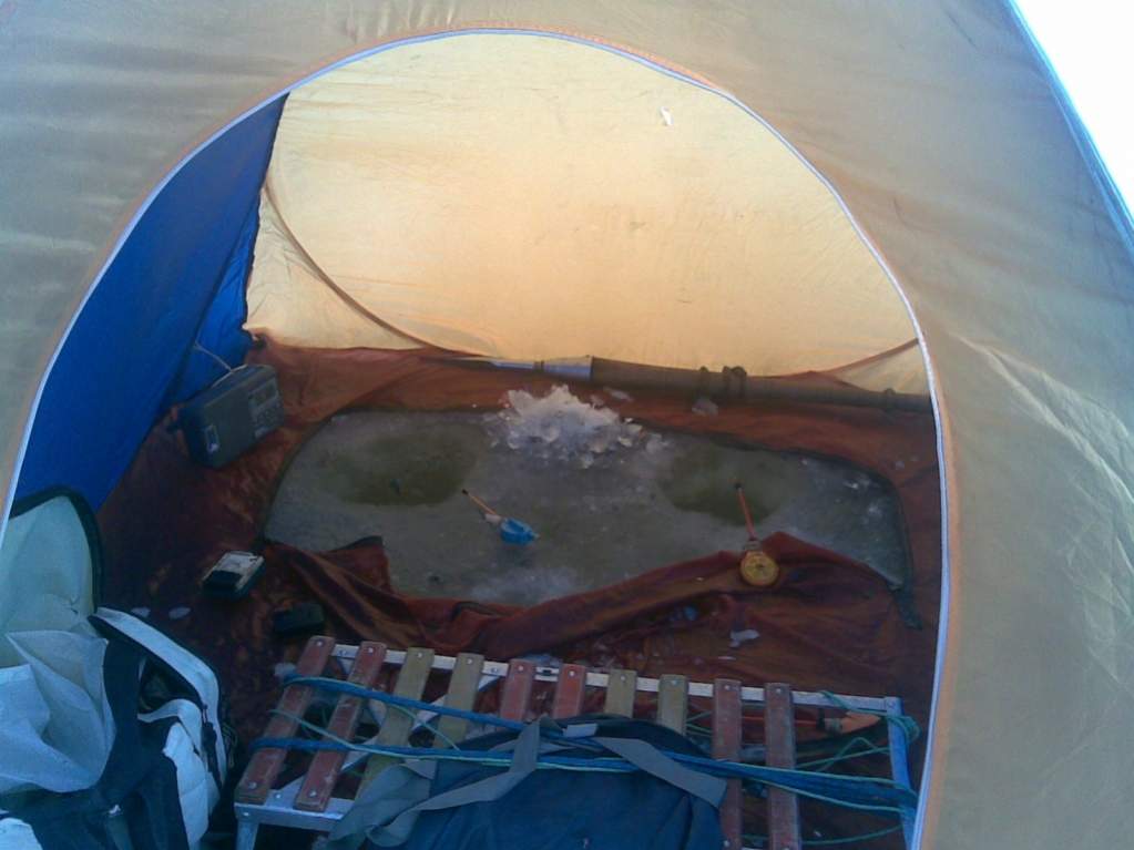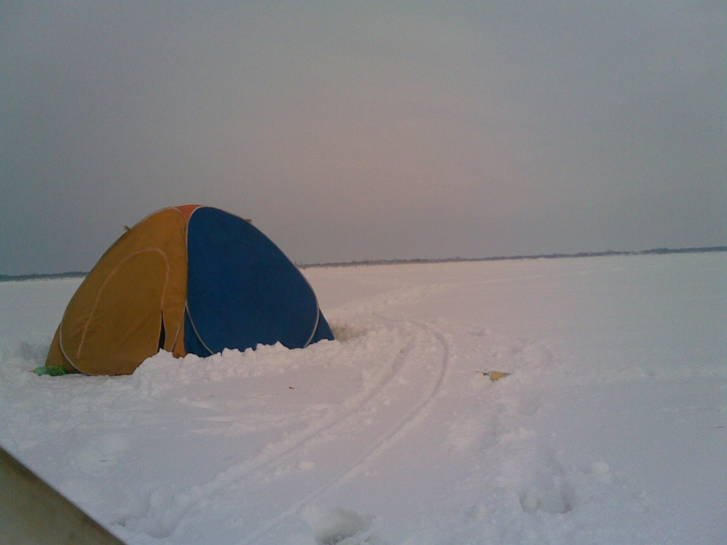 Погодка зато была супер, поход 40мин. с утра по непротоптанному снегу- никакой зарядки и не надо , обновил пешню и палатку.